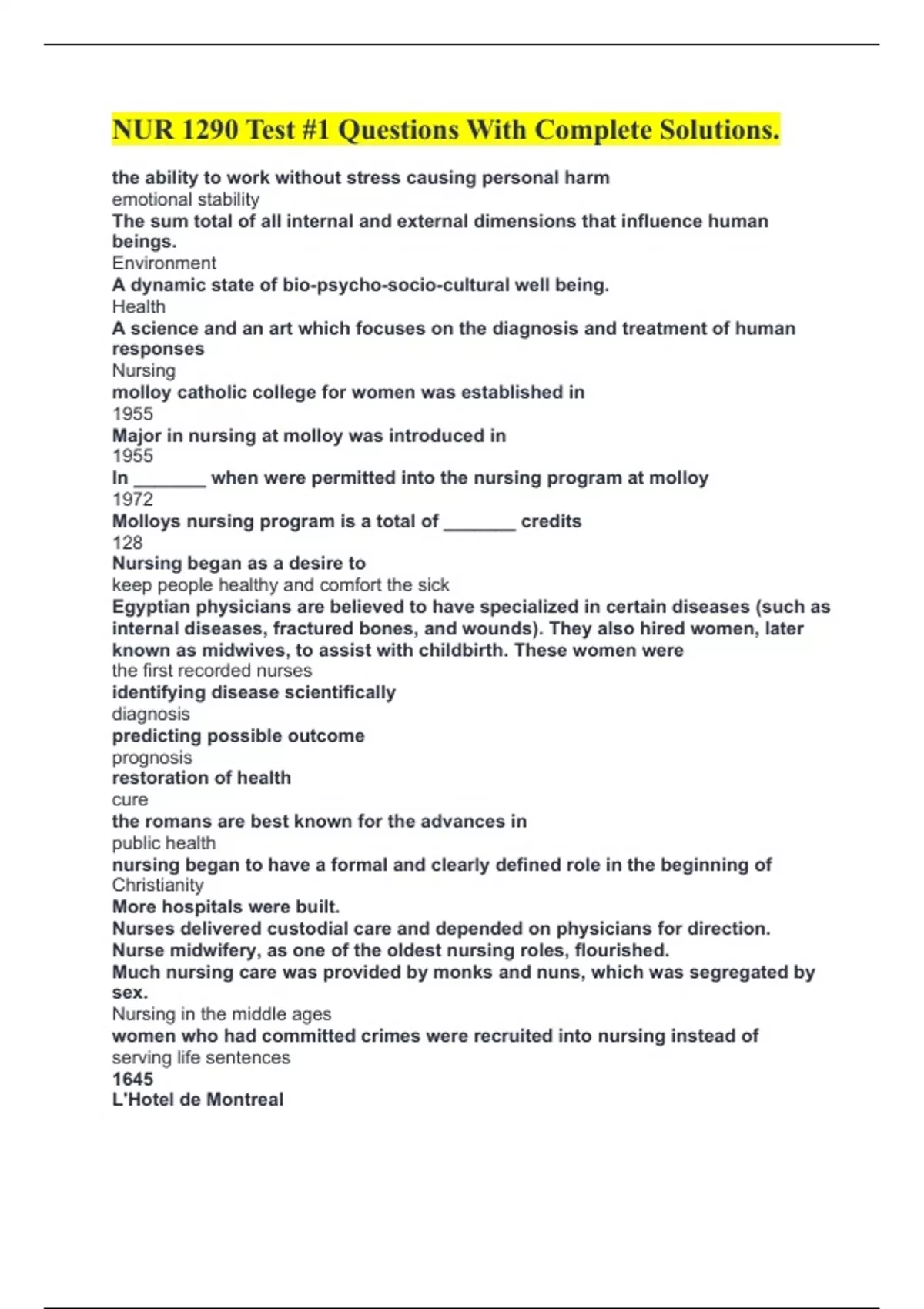 Major in nursing at molloy was introduced in