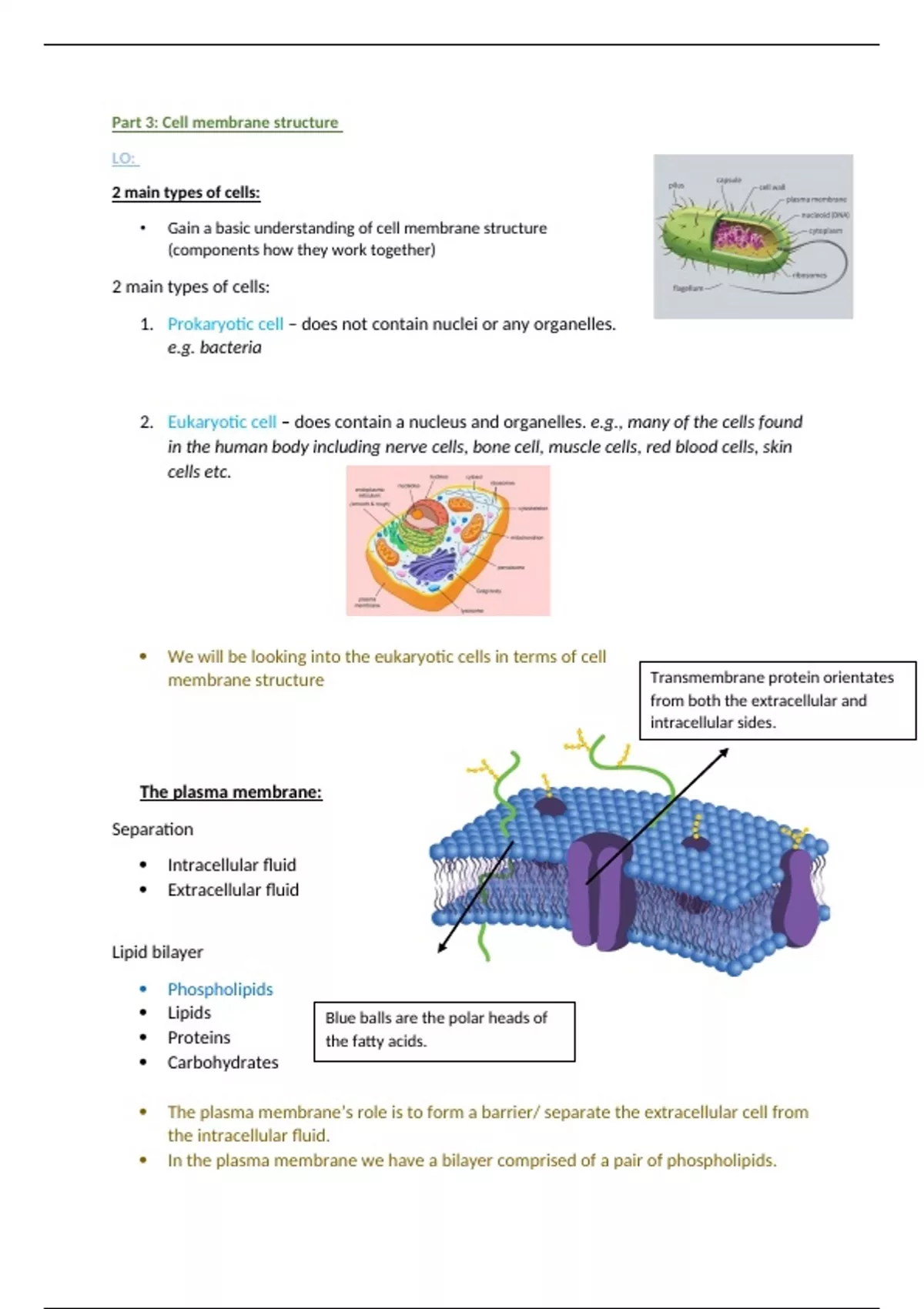  The plasma membrane’s role is to form a barrier/ separate the extracellular cell from