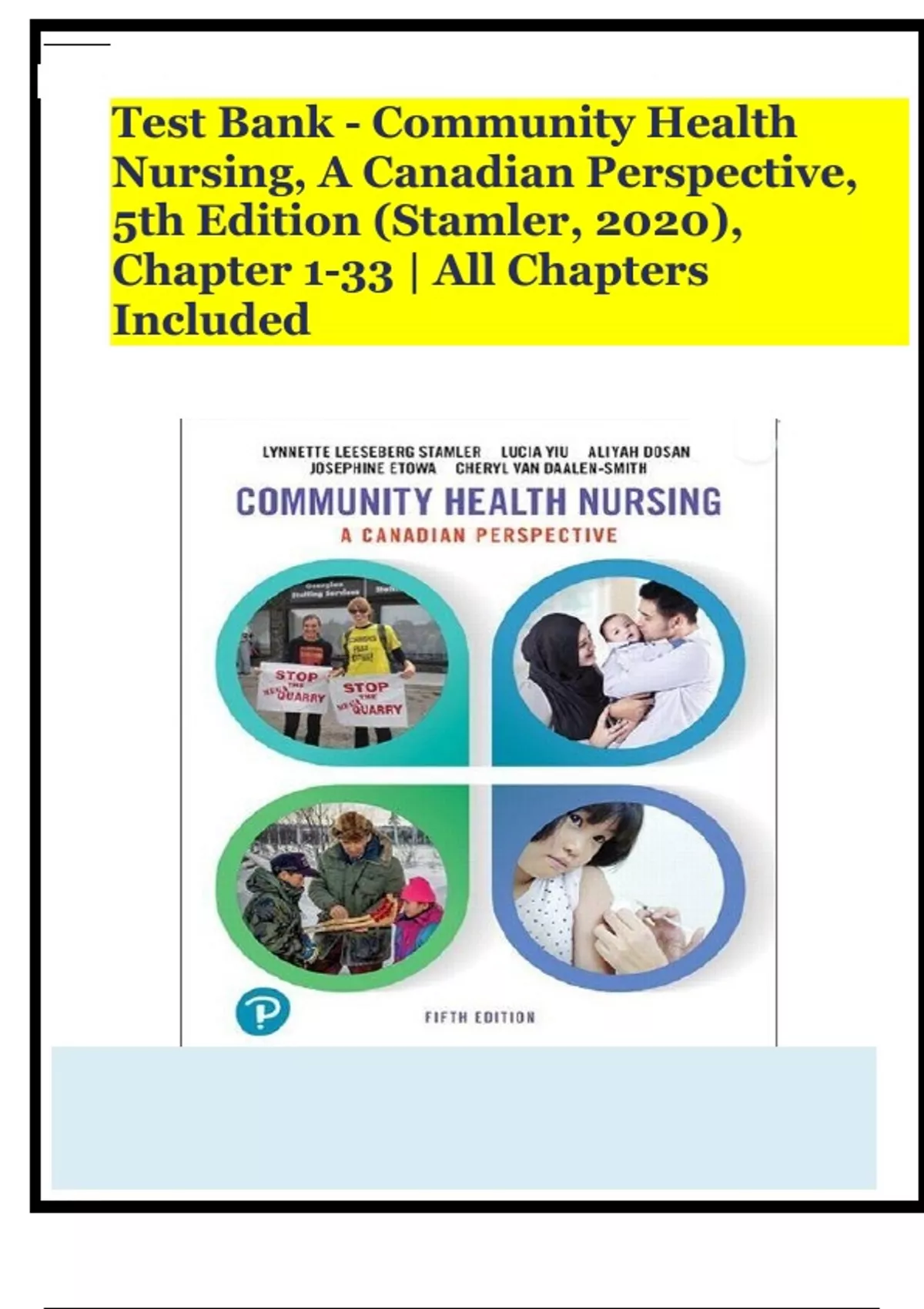 Test Bank - Community Health Nursing, A Canadian Perspective, 5th Edition (Stamler, 2020), Chapter 1-33 | All Chapters Included