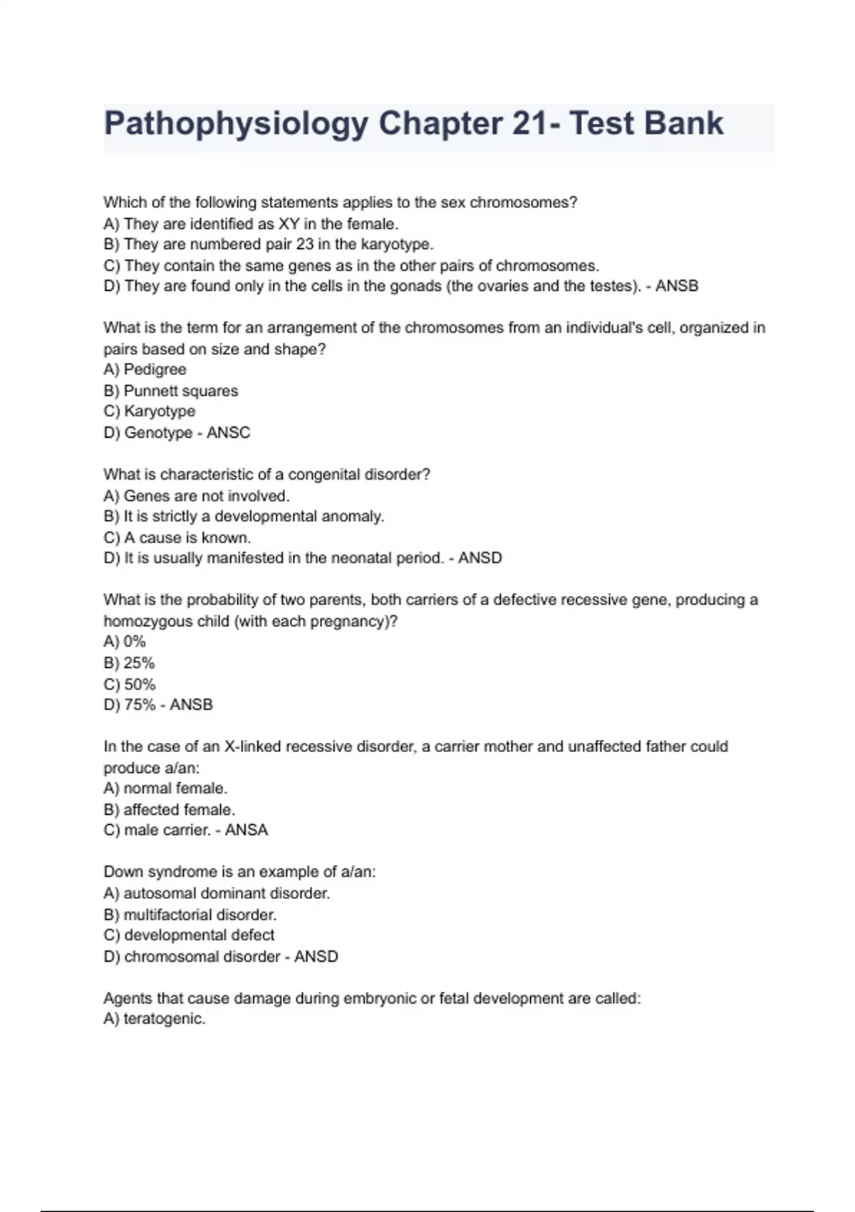 Pathophysiology Chapter 21- Test Bank 7th Edition