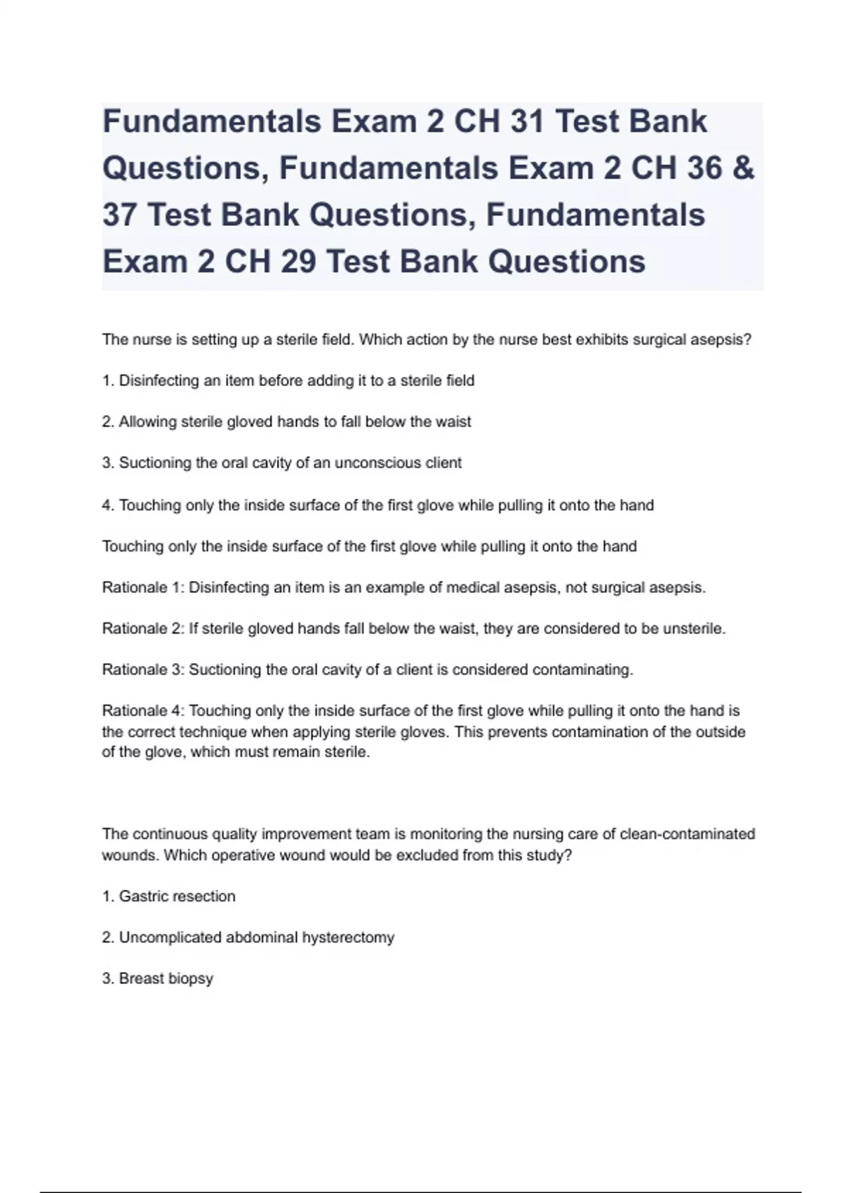 Fundamentals Exam 2 CH 31 Test Bank Questions, Fundamentals Exam 2 CH 36 & 37 Test Bank Questions, Fundamentals Exam 2 CH 29 Test Bank Questions &Answers A+ Graded