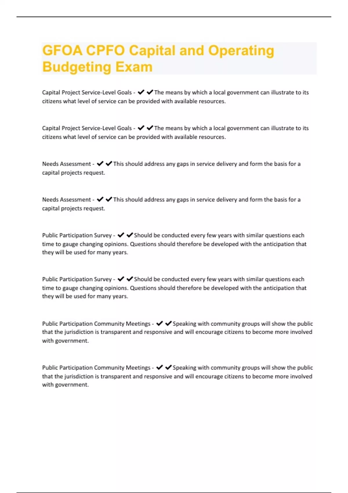 GFOA CPFO Capital and Operating Budgeting Exam Questions And Answers Already Graded A+