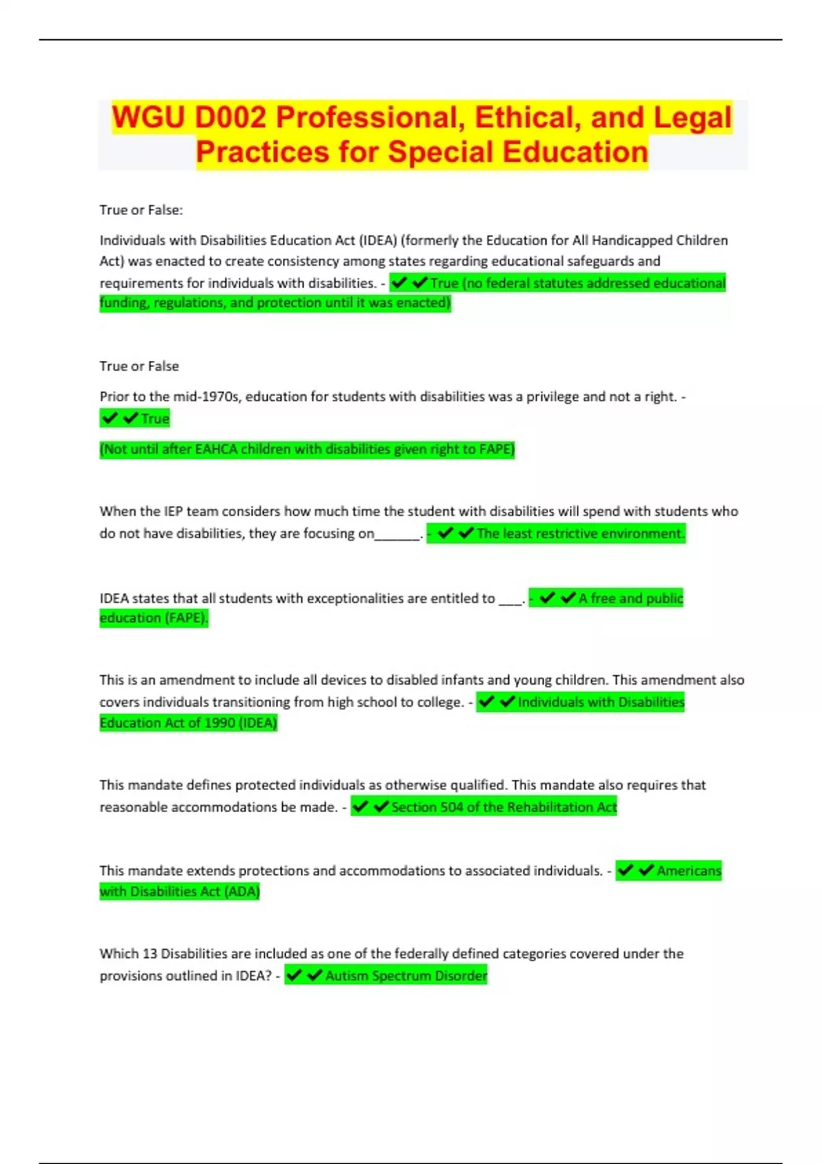 WGU D002 Professional, Ethical, and Legal Practices for Special Education True or False:/ (Top 2024/2025 EXAM REVIEW PAPERS / GRADED A+/ 100% Accurate)