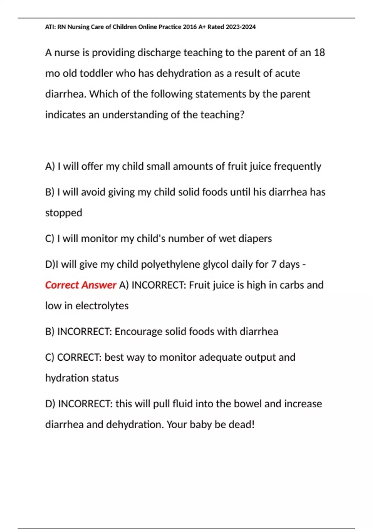 ATI: RN Nursing Care of Children Online Practice 2016 A+ Rated