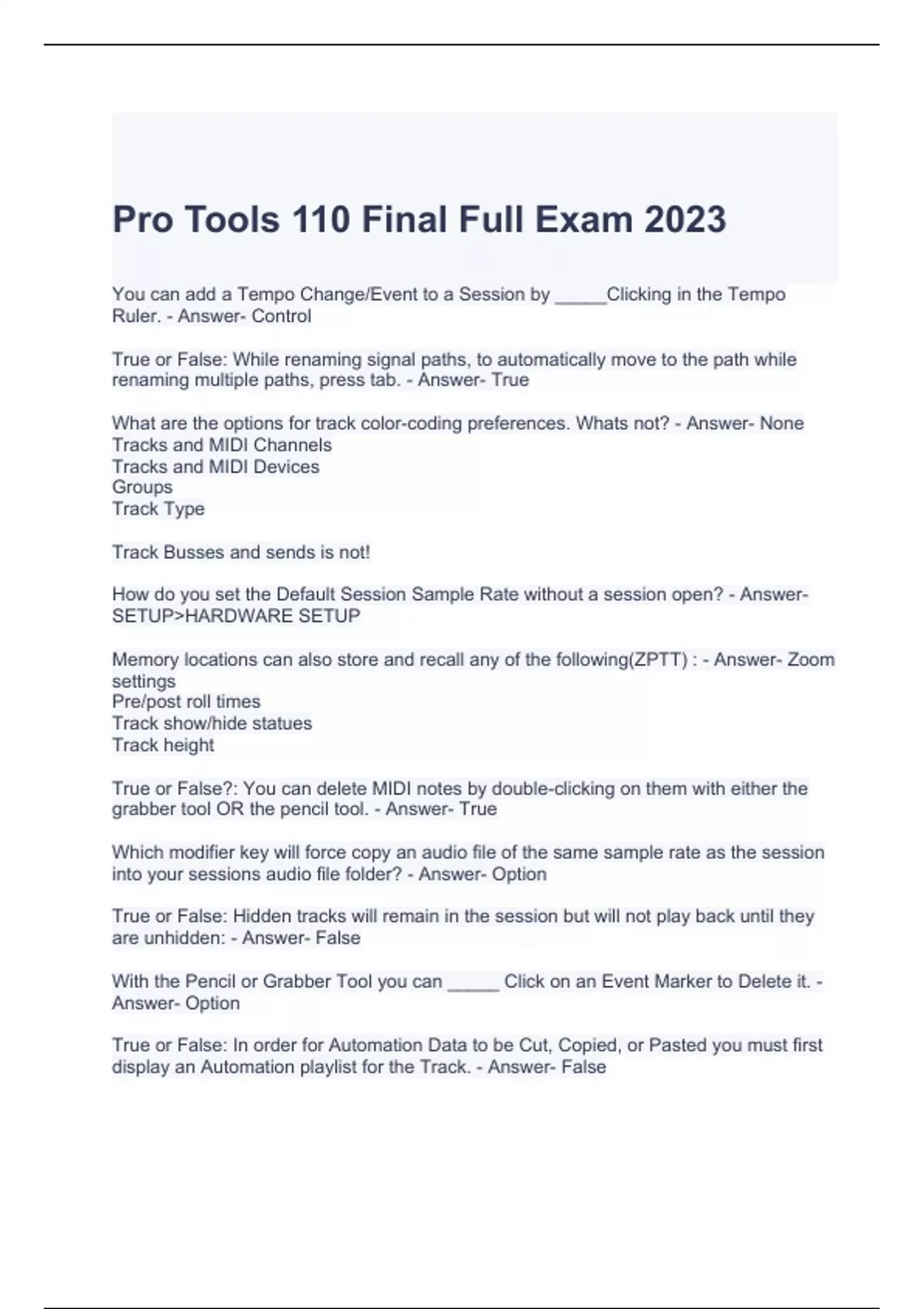 Pro Tools 110 Final Full Exam 2023.