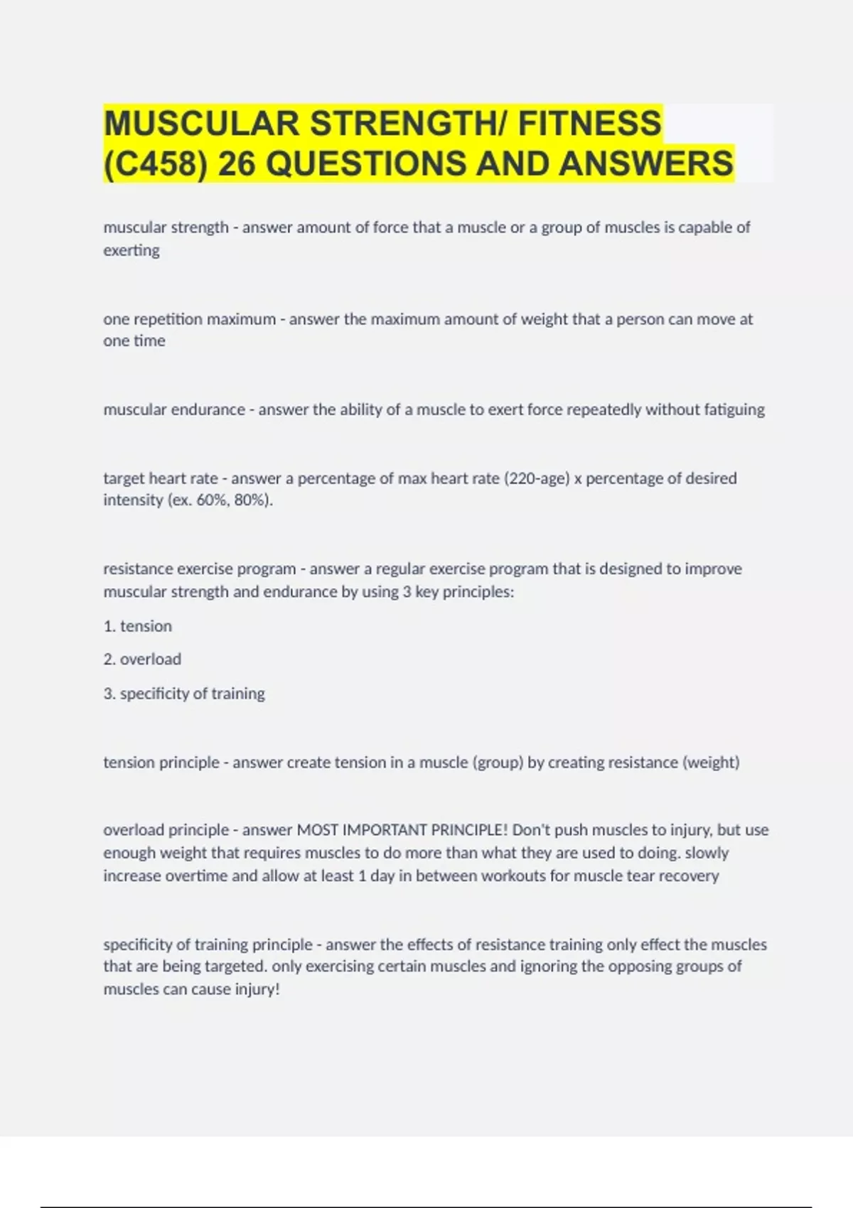 MUSCULAR STRENGTH FITNESS (C458) |26 QUESTIONS AND ANSWERS