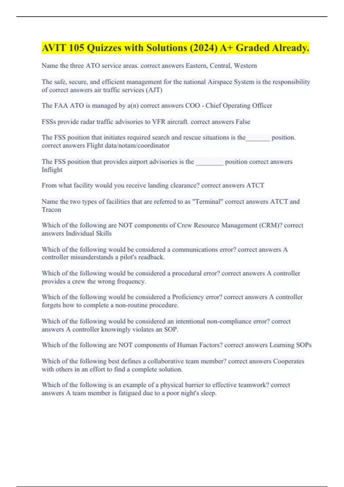 AVIT 105 Quizzes with Solutions (2024) A+ Graded Already.