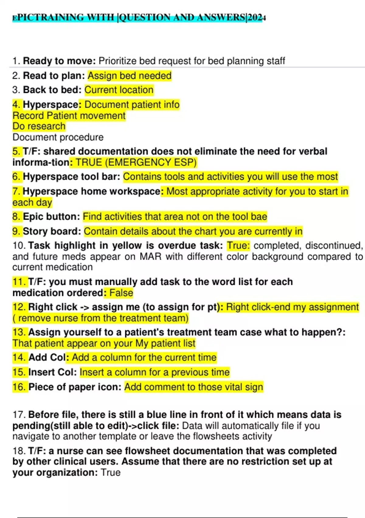 18. T/F: a nurse can see flowsheet documentation that was completed