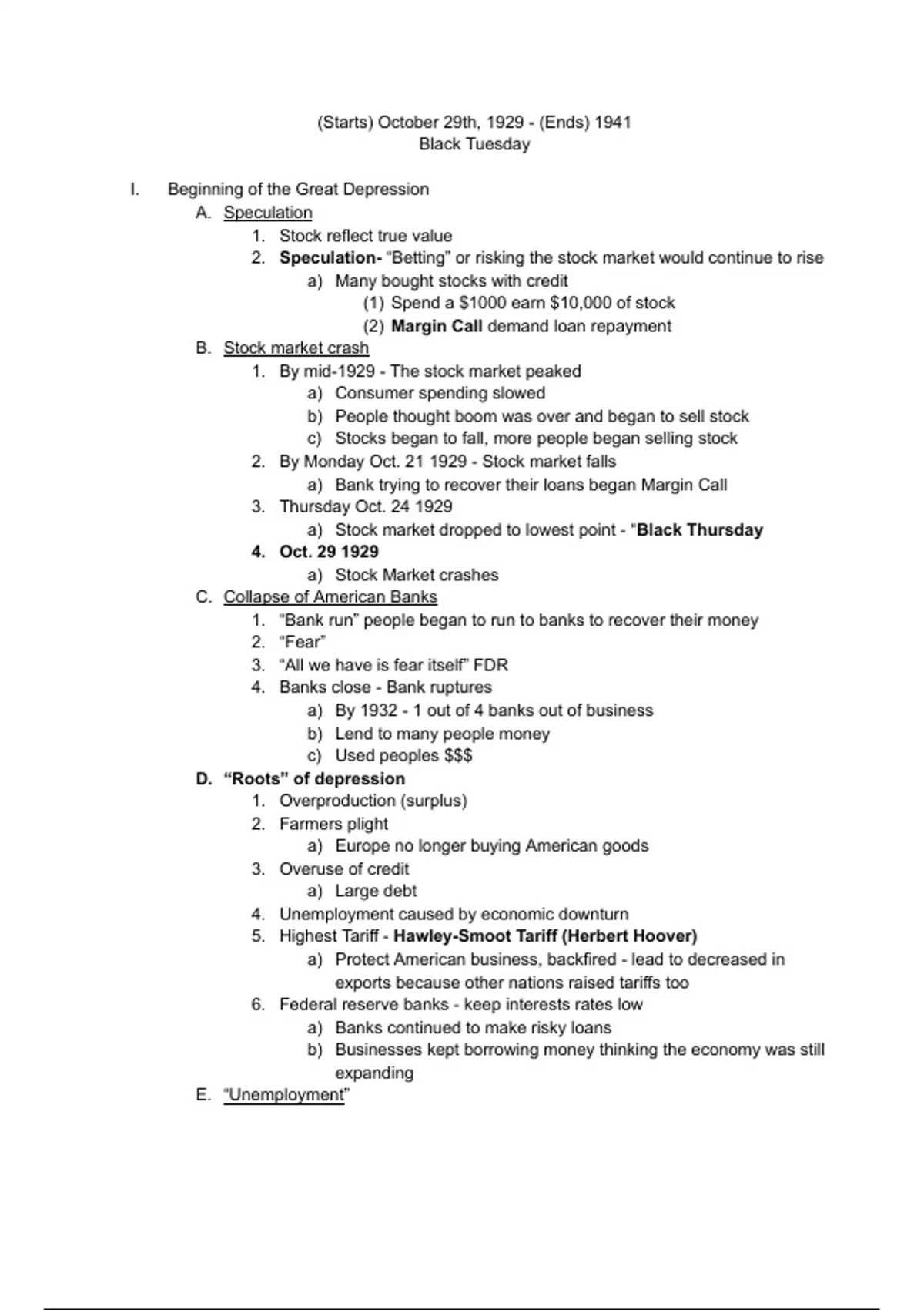 Class notes - The Great Depression (U.S. History)