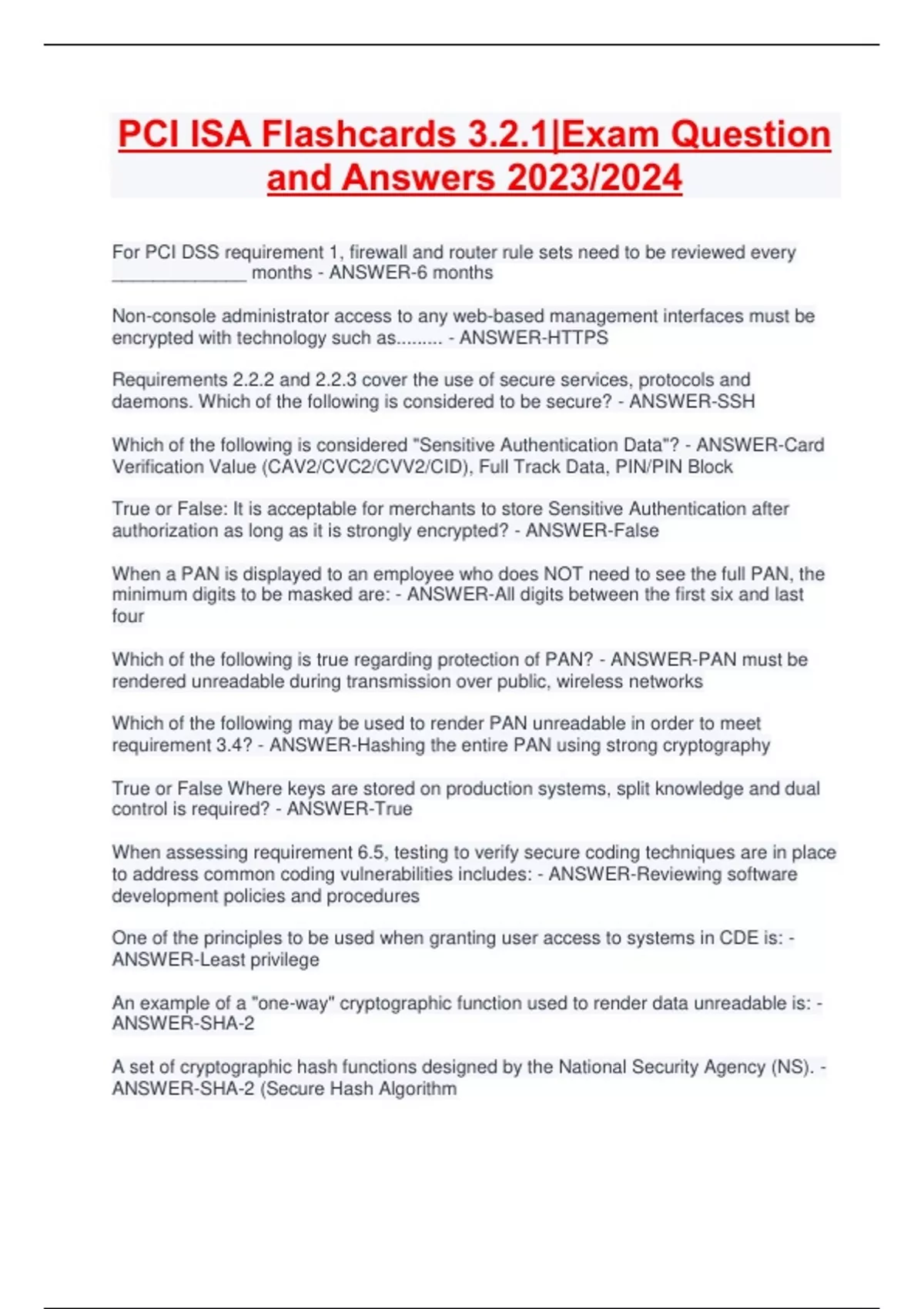 PCI ISA Flashcards 3.2.1|Exam Question and Answers 2023/2024