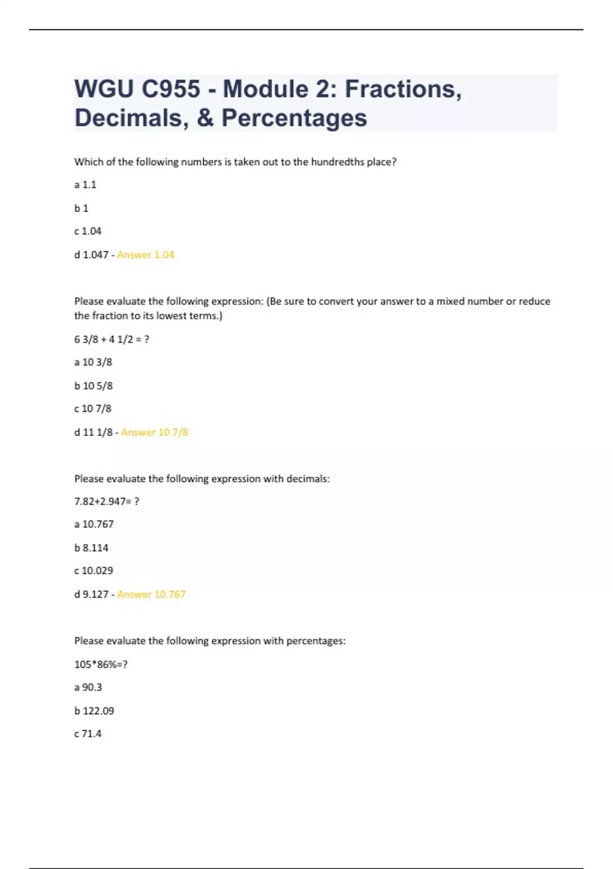 - WGU C955 - Module 2: Fractions, Decimals, & Percen