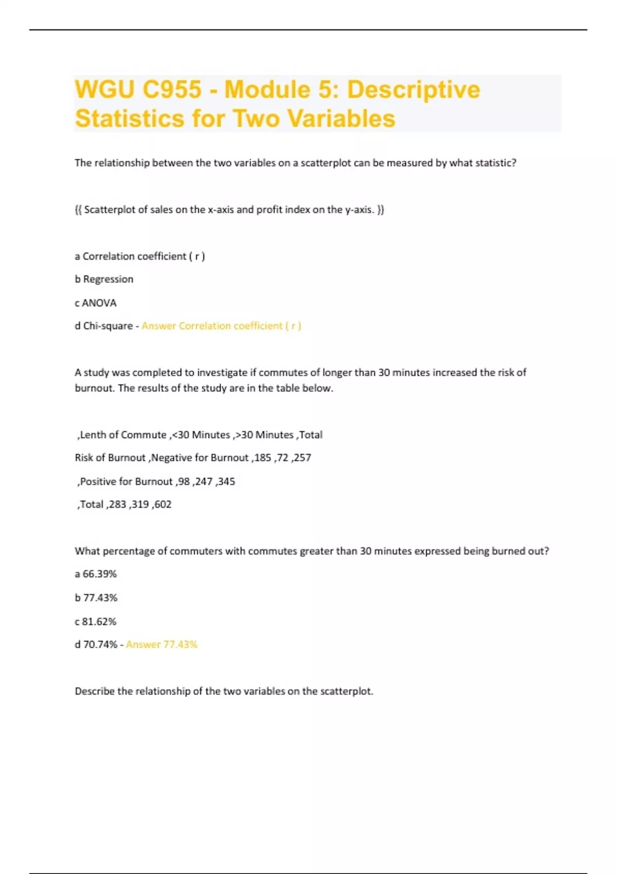 WGU C955 - Module 5: Descriptive Statistics for Two Variables Questions and Answers with complete solution