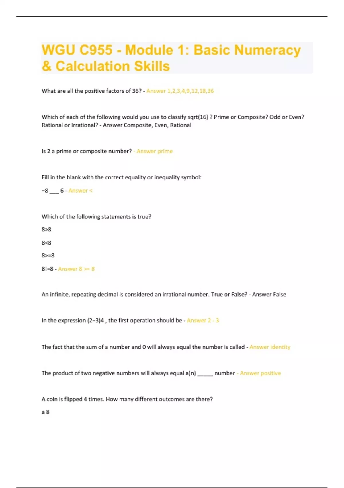WGU C955 - Module 1: Basic Numeracy & Calculation Skills Questions With 100% Correct Answers.