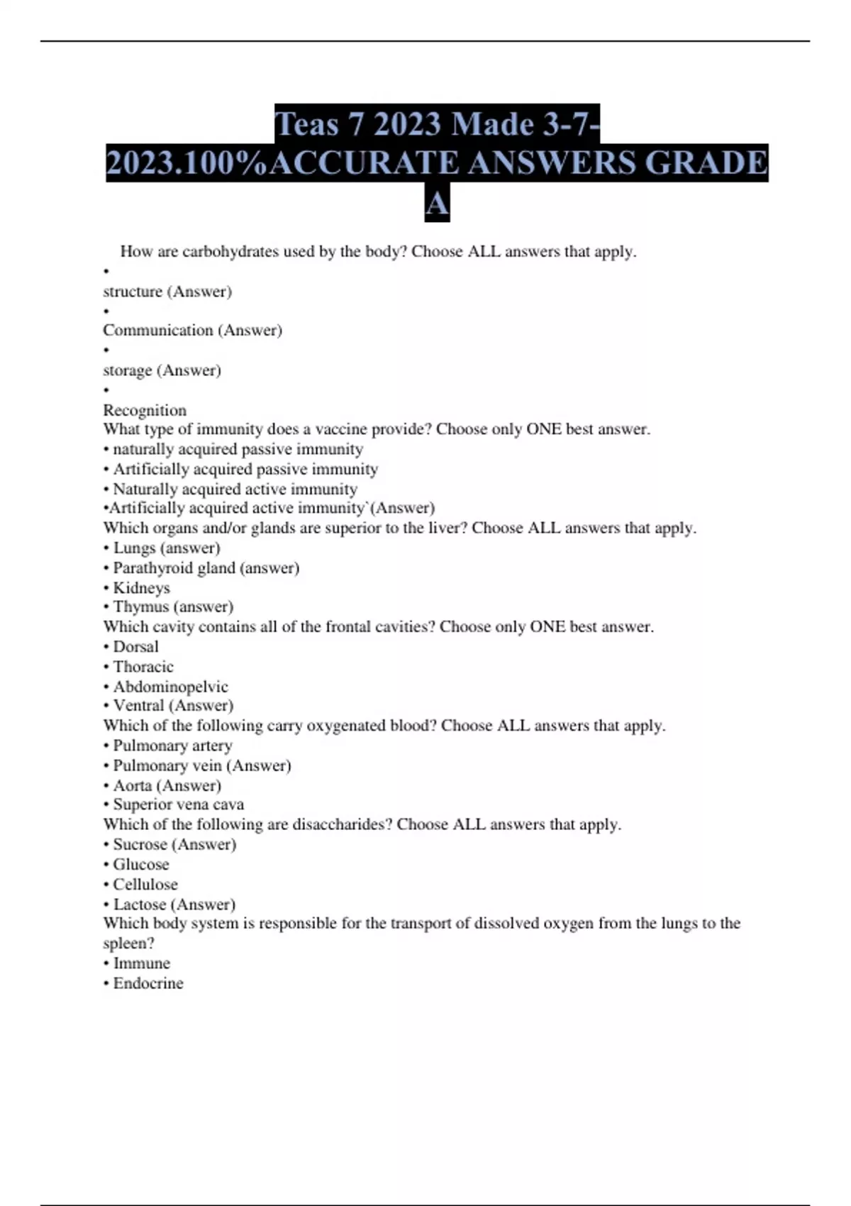 - Teas 7-2023.100%ACCURATE ANSWRS GRA