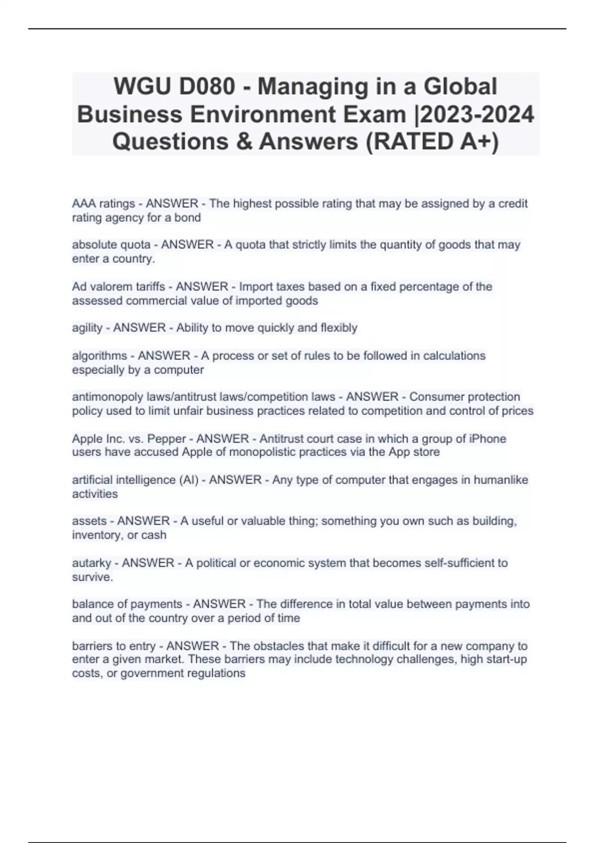 WGU D080 - Managing in a Global Business Environment Exam | Questions & Answers (RATED A+)