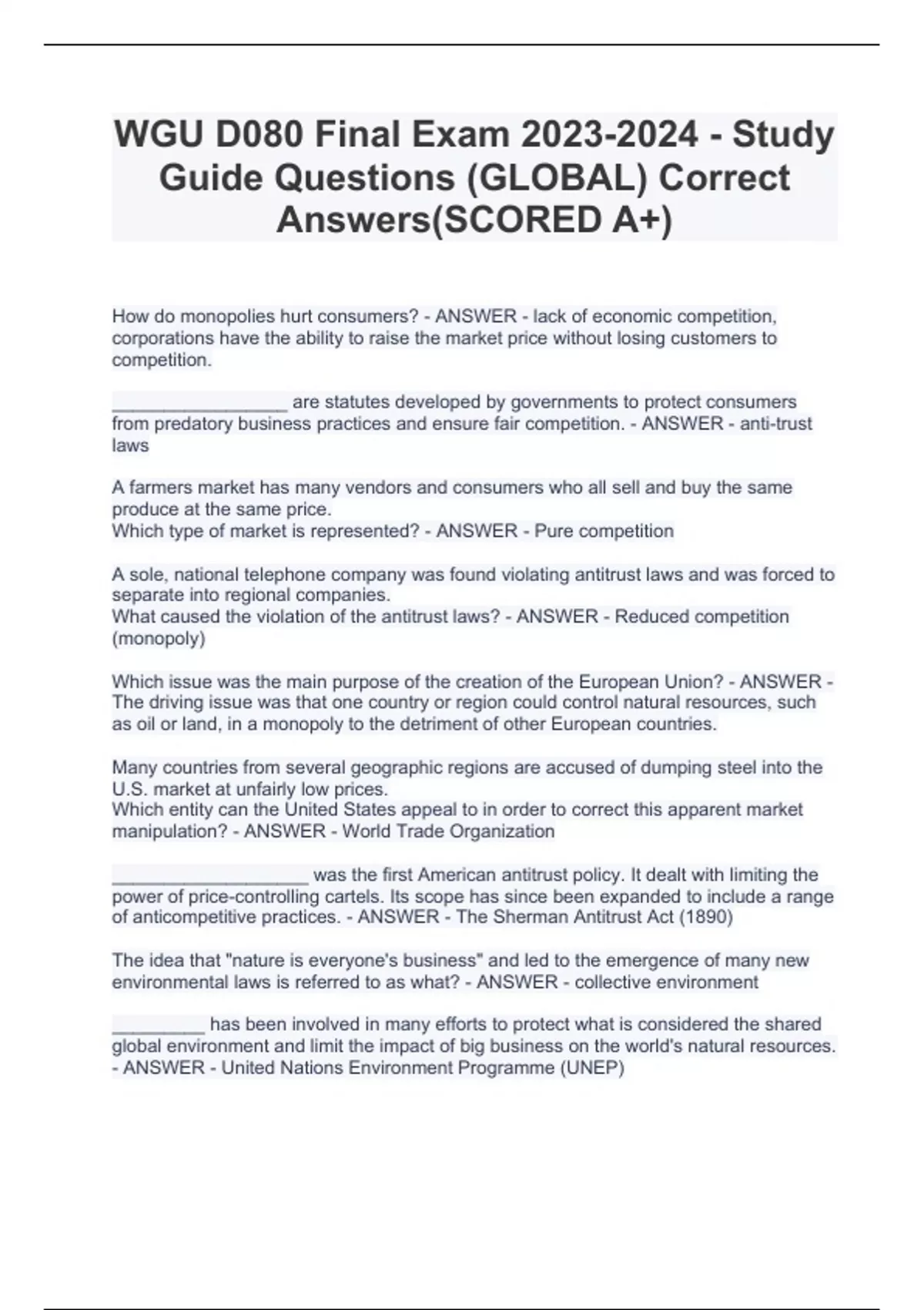 WGU D080 Final Exam - Study Guide Questions (GLOBAL) Correct Answers(SCORED A+)
