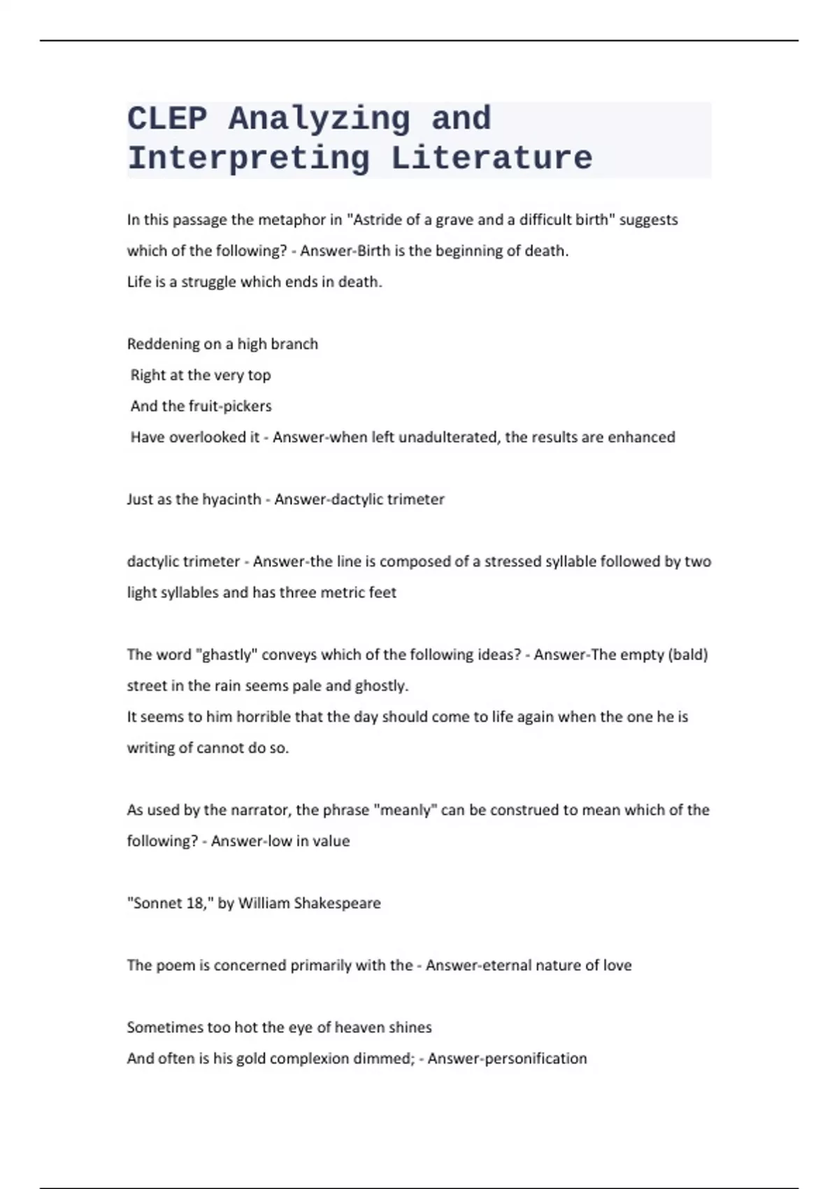 CLEP Analyzing and Interpreting Literature 2023/2024