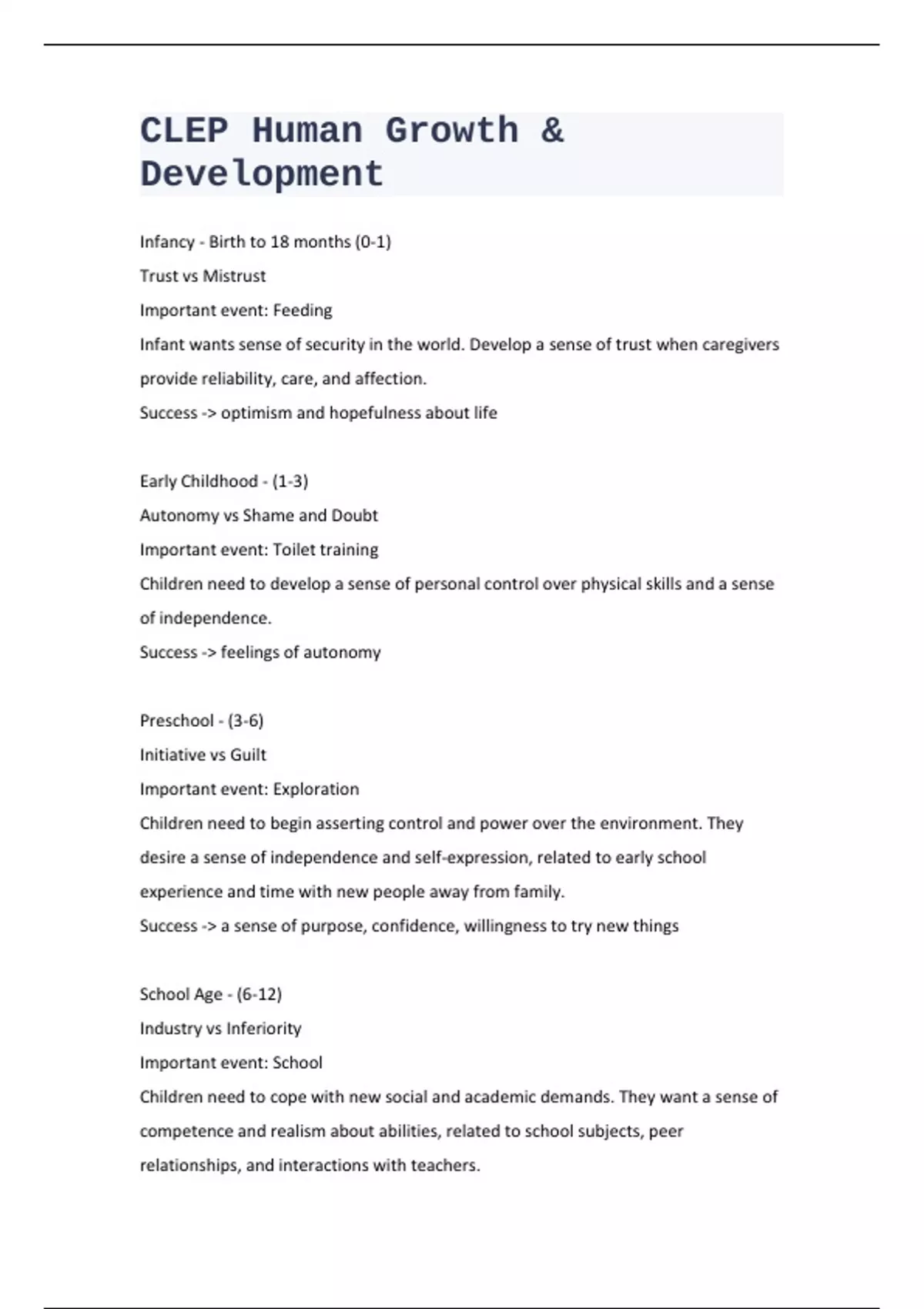- CLEP Human Growth & Development