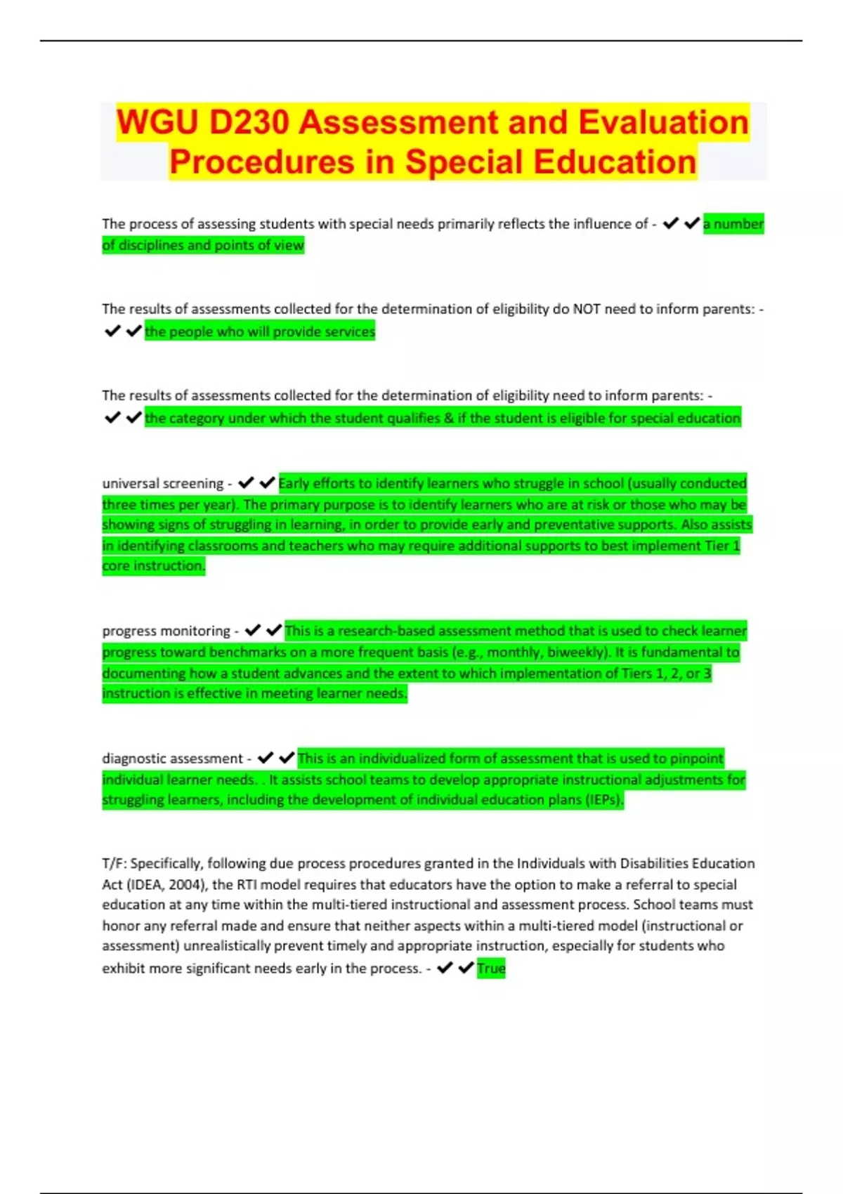 (Top 2024/2025 EXAM REVIEW PAPERS / GRADED A+/ 100% Accurate) WGU D230 Assessment and Evaluation Procedures in Special Education