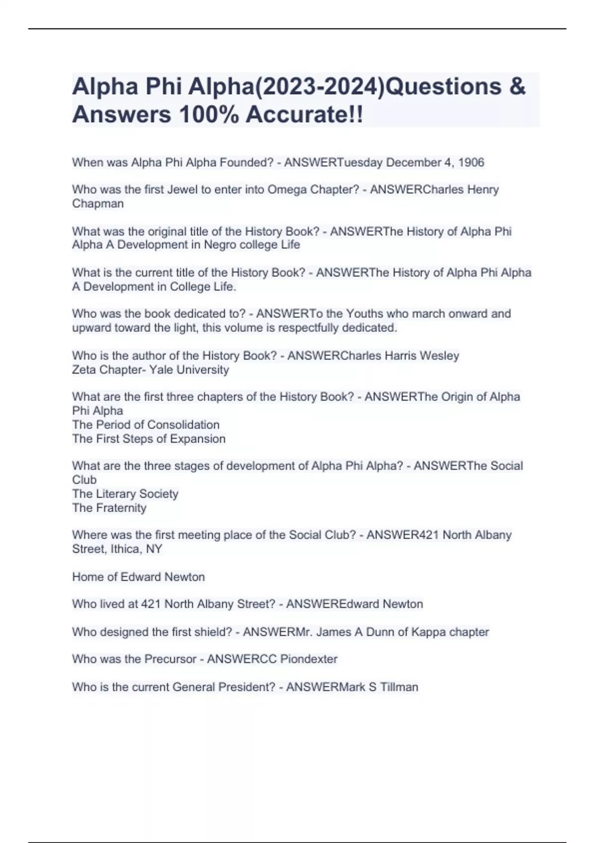 Alpha Phi Alpha()Questions & Answers 100% Accurate!!