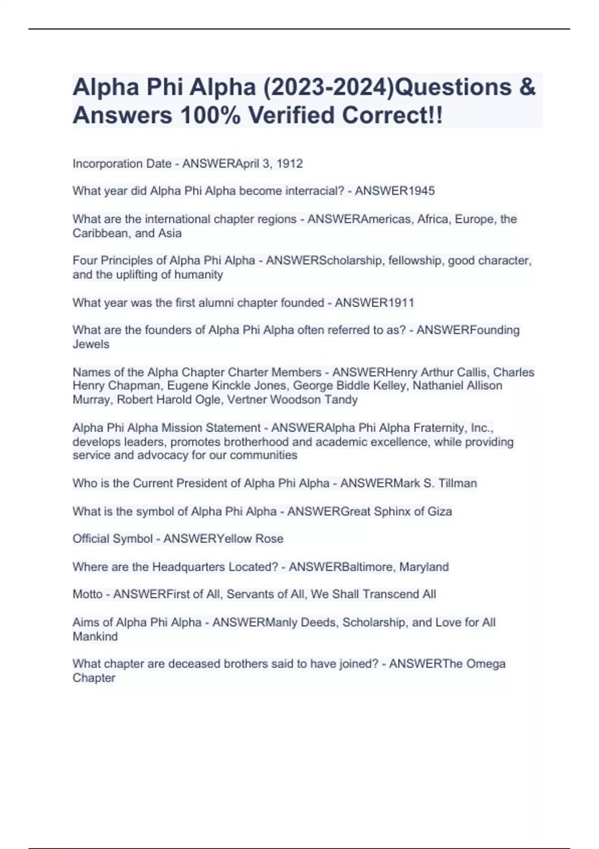 Alpha Phi Alpha ()Questions & Answers 100% Verified Correct!!