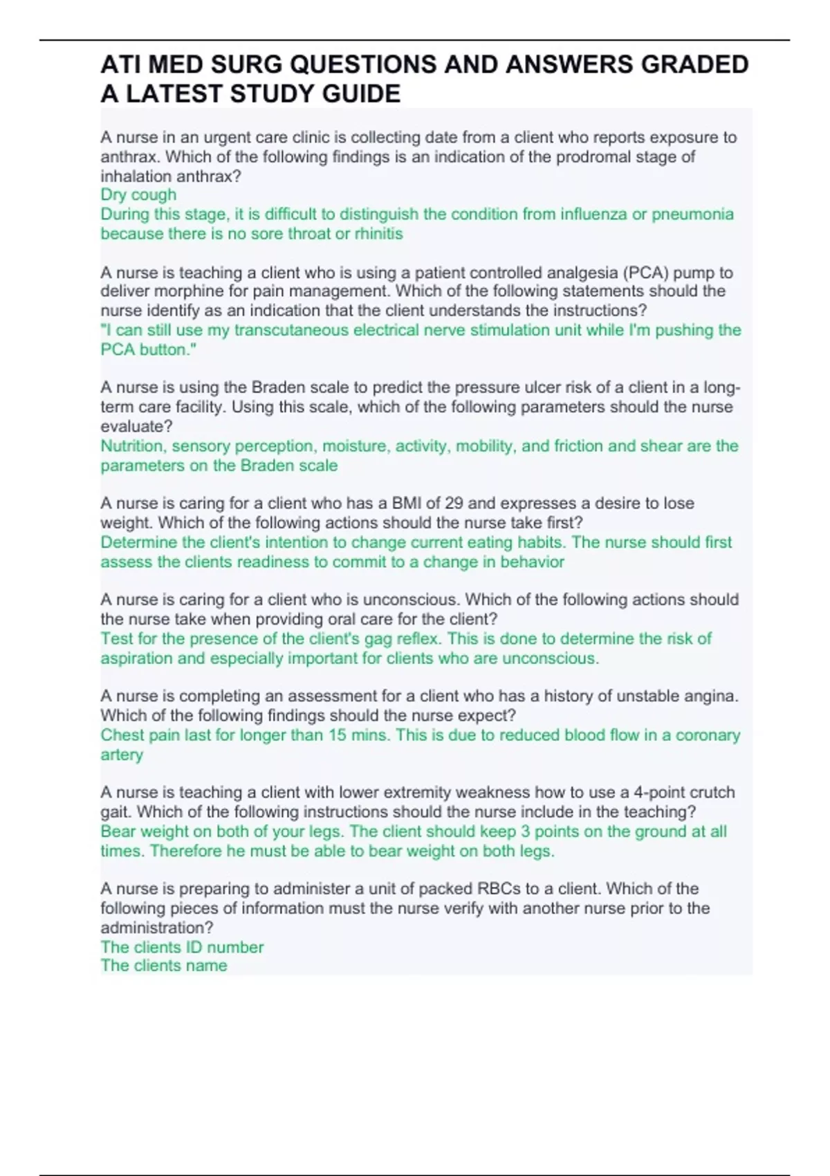 ATI MED SURG QUESTIONS AND ANSWERS GRADED A LATEST STUDY GUIDE