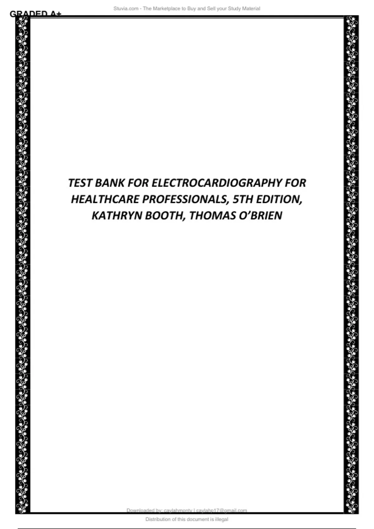 FULL TEST BANK FOR ELECTROCARDIOGRAPHY FOR HEALTHCARE PROFESSIONALS, 5TH EDITION KATHRYN BOOTH, THOMAS O’BRIEN| ALL CHAPTER WITH COMPLETE SOLUTIONS (ANSWERS KEY) IN EVERY CHAPTER