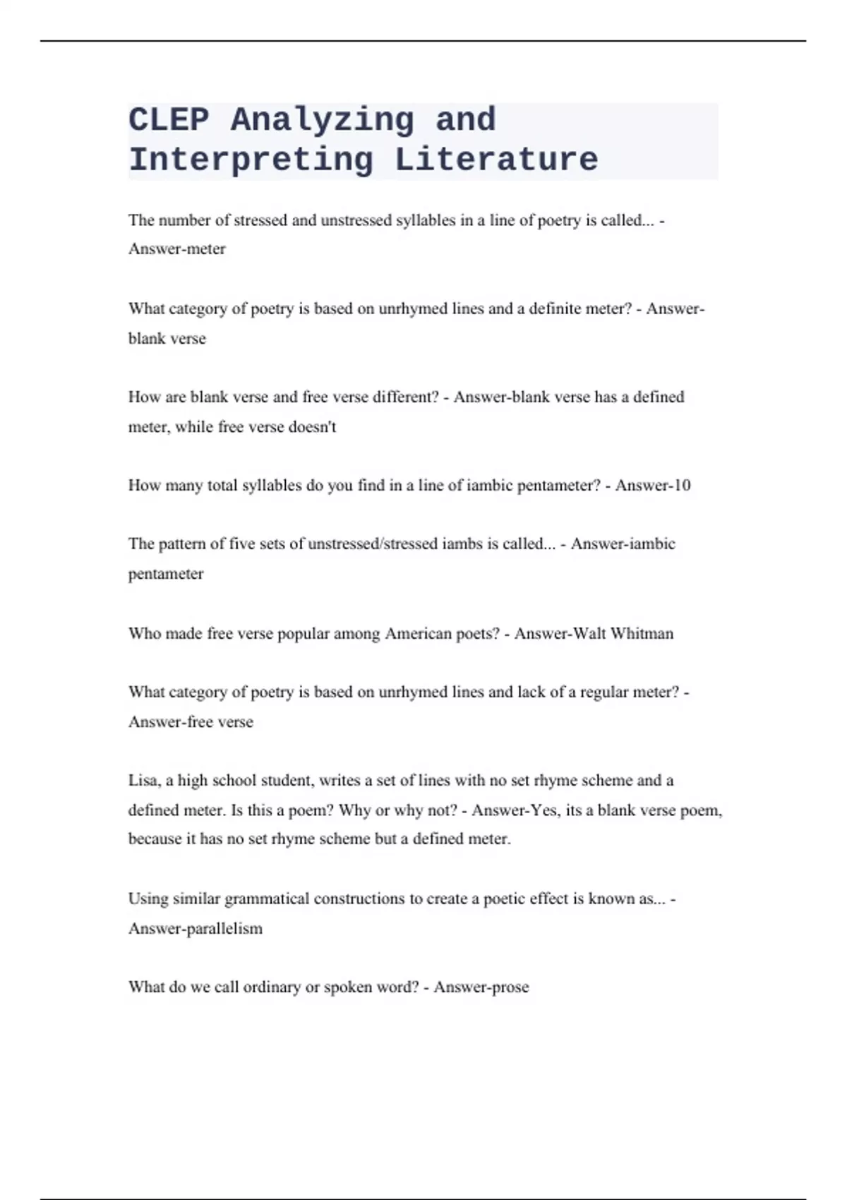 CLEP Analyzing and Interpreting Literature 2023/2024