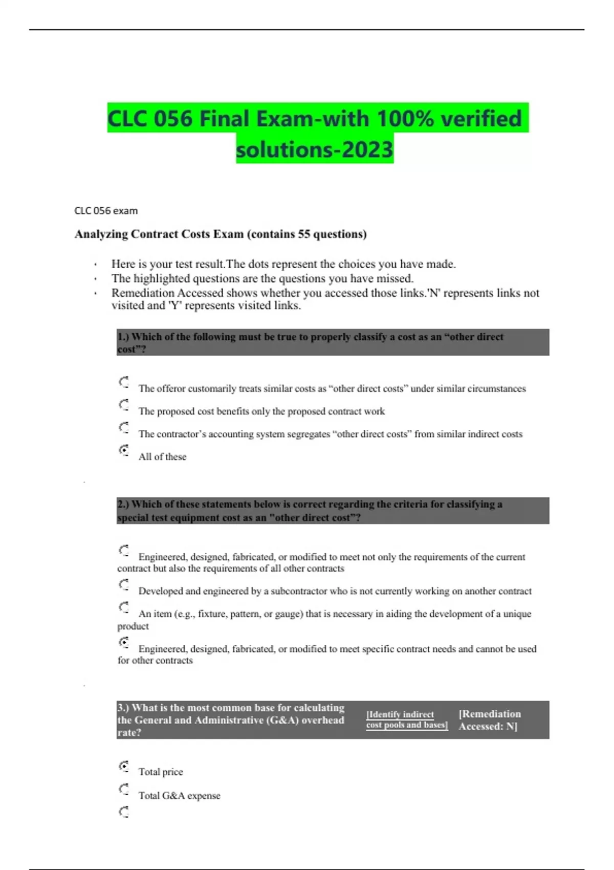 CLC 056 Final Exam-with 100% verified solutions-2023