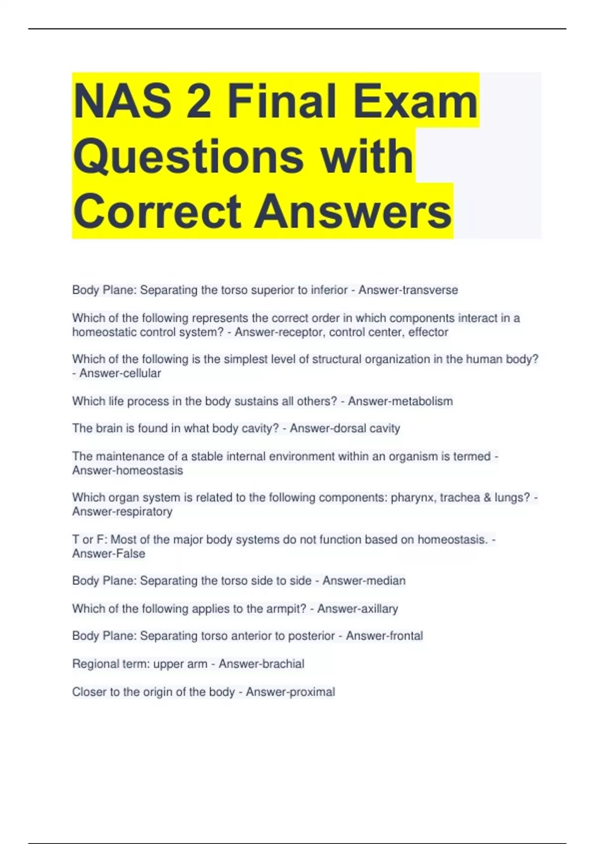 dependent variable Which of the following groups conditions remain the same within an experiment? - Answer -control Toward of at the body surface - Answer -superficial Which type of graph is primarily used for comparisons? - Answer -bar graph Toward or at the back of the body - Answer -dorsal Which of the following contain an "If - Then" statement? - Answer -hypothesis superior means toward the head and inferior means ________________ the head. - Answer -away from T or F: MRI and CT scans are better for illuminating body cavities and their contents than x -rays - Answer -true Which best describes the lining of the body wall of the thoracic/lung cavity? - Answer -