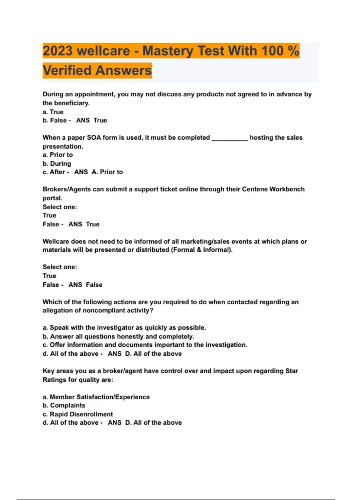 2023 wellcare - Mastery Test With 100 % Verified Answers||A+ Graded||Actual Exam