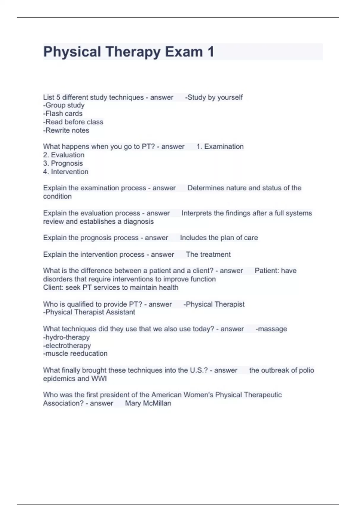 Physical Therapy Exam 1