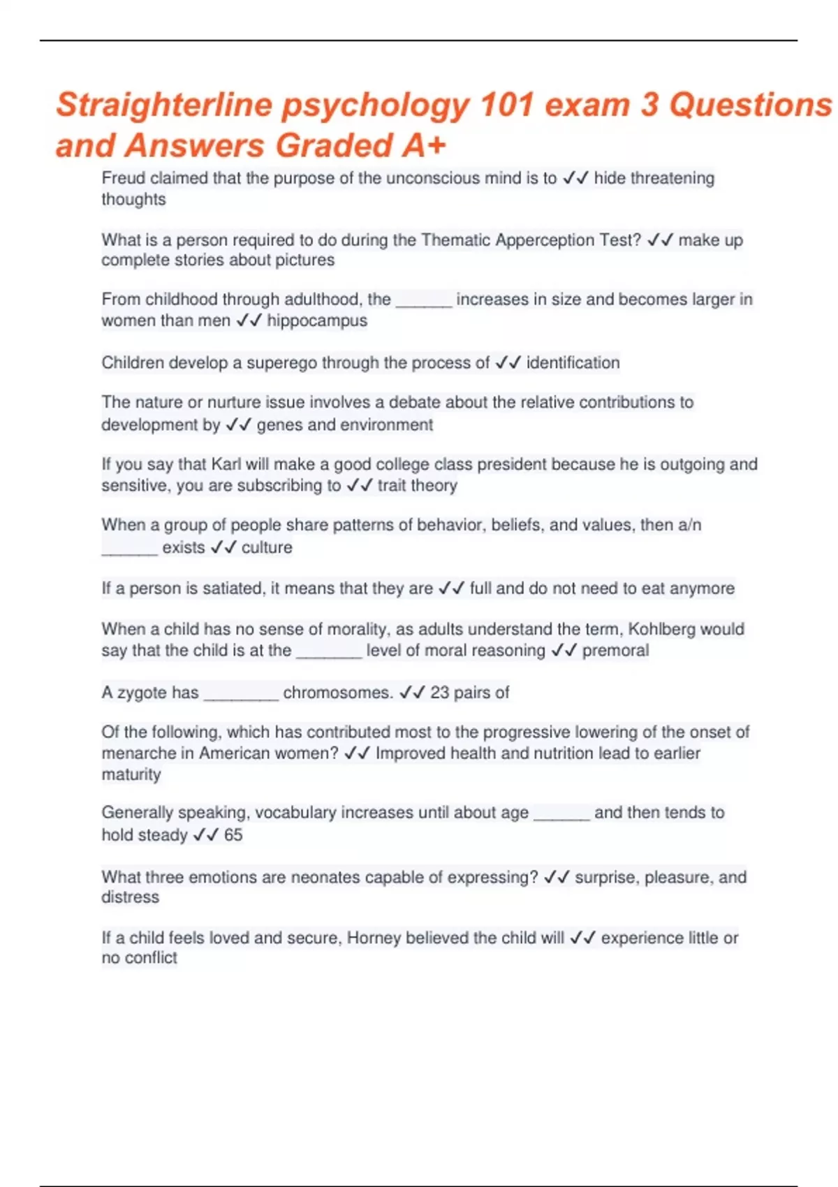 Straighterline Psychology 101 Exam #3 Questions and Correct Answers (Complete Solution) Graded A+