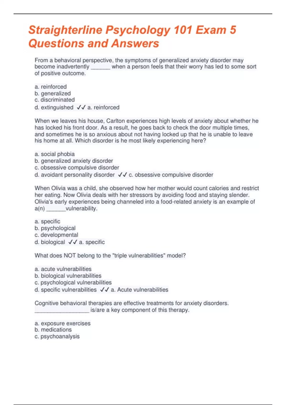 Straighterline Psychology 101 Exam #5 Questions and Correct Answers (Complete Solution) Graded A+