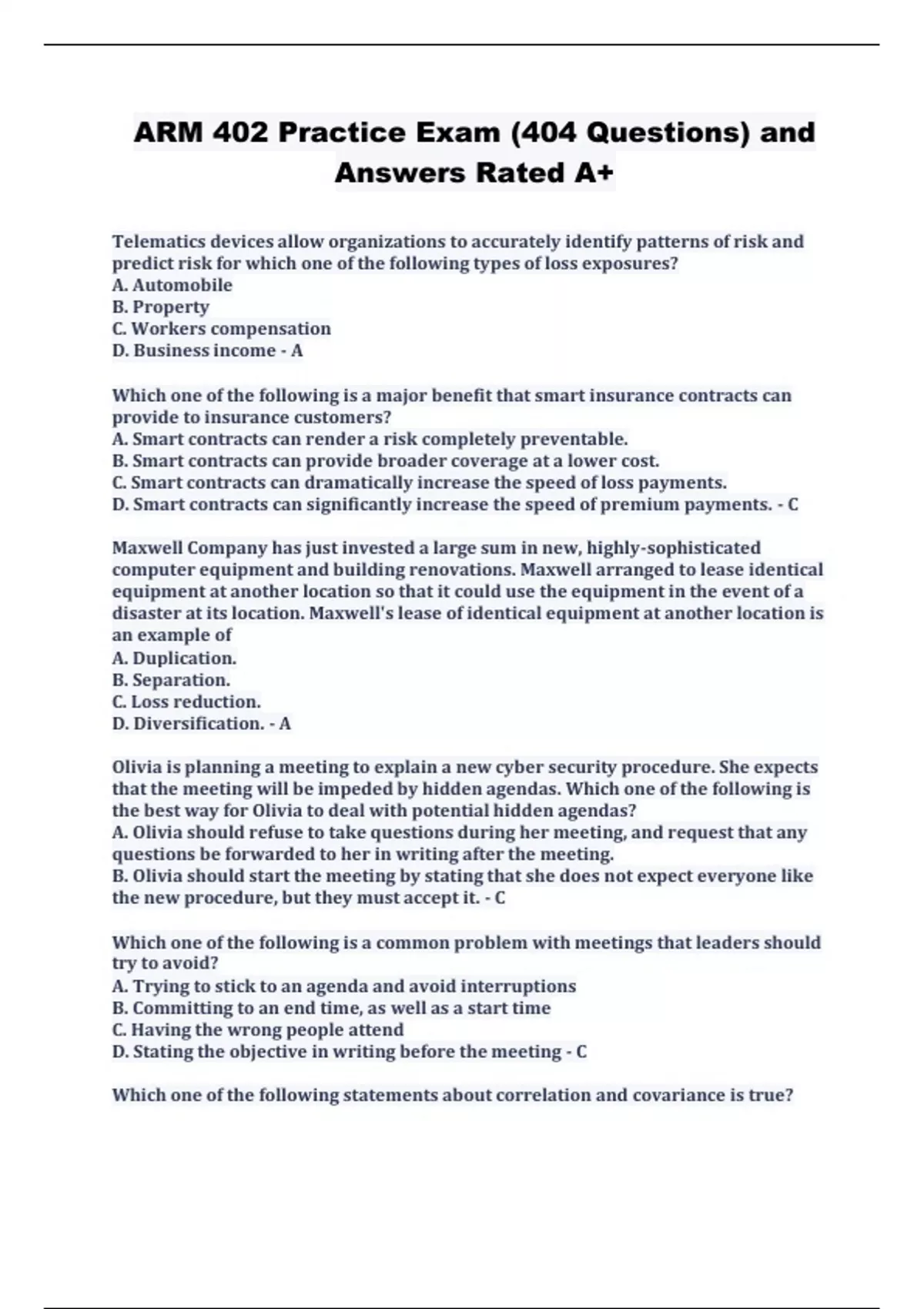 arm 402 practice exam 404 questions and answers