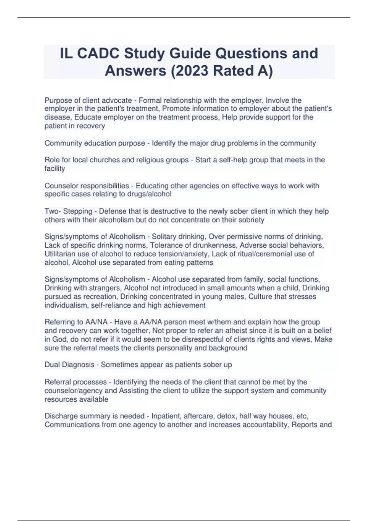 IL CADC Study Guide Questions and Answers (2023 Rated A)