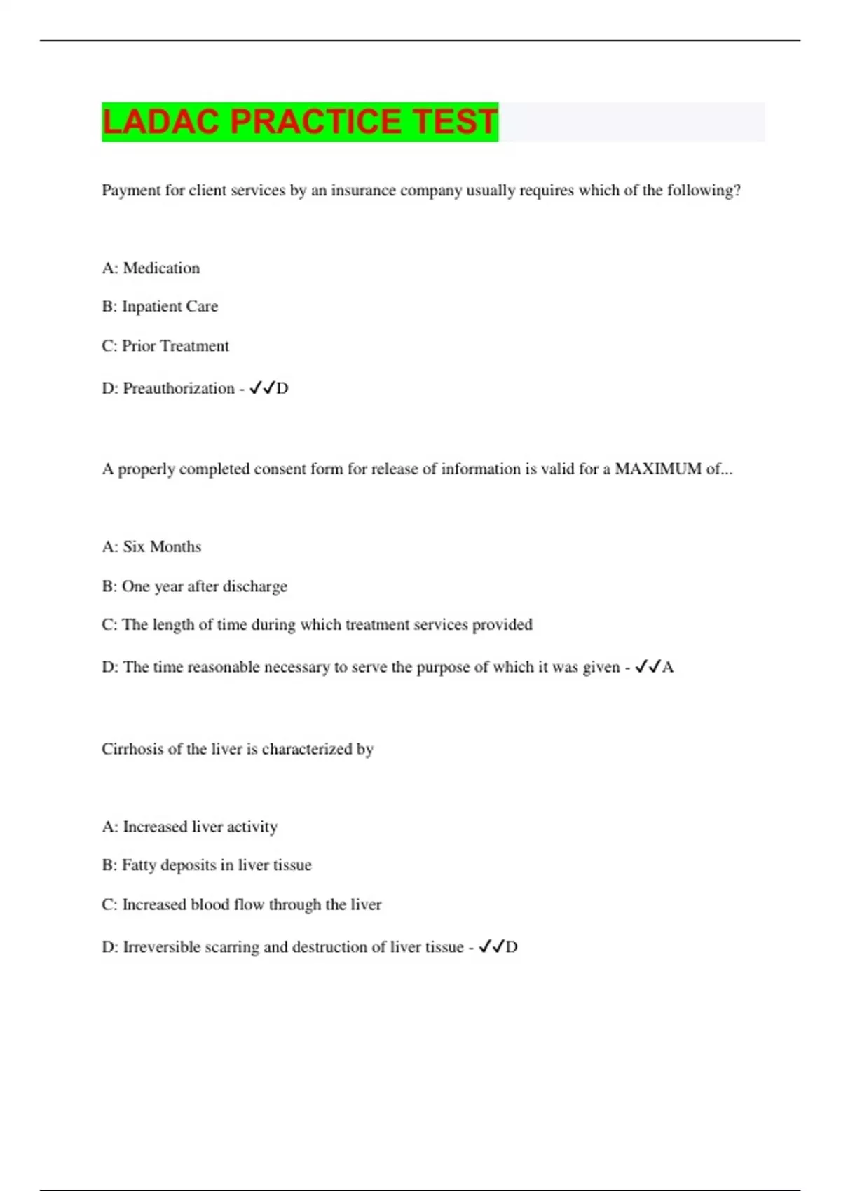 LADAC PRACTICE TEST | Questions with 100% Correct Answers | Latest Update 2024 | Verified