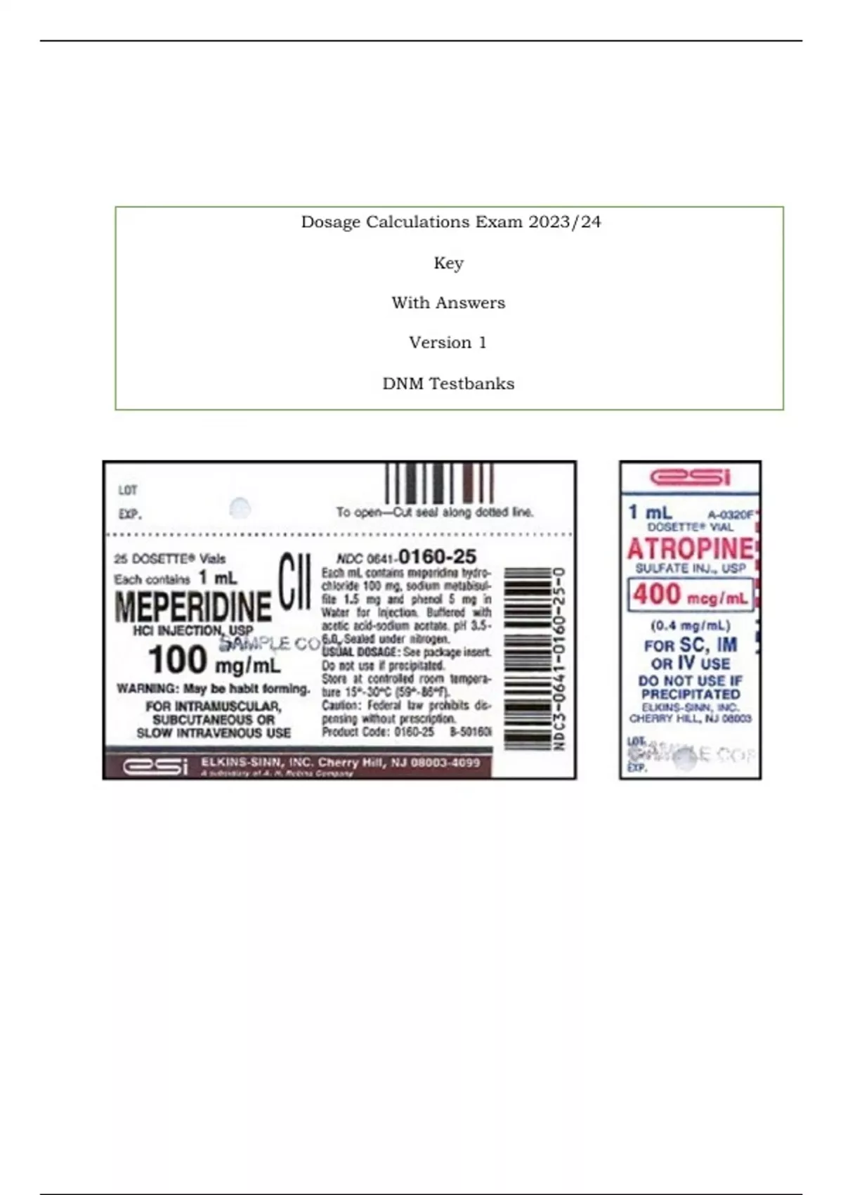 ATi Dosage Calculation: Final Exam 23/24 with Answers DNM