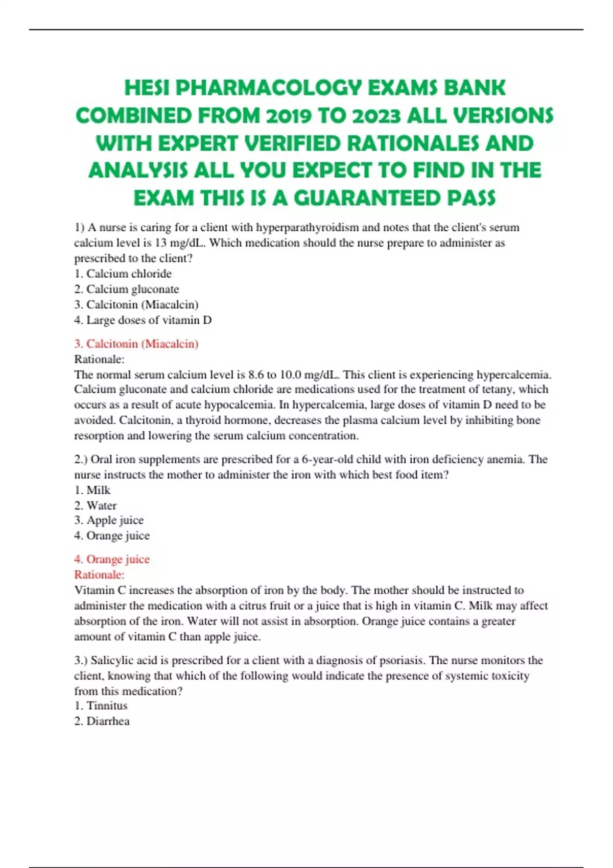 HESI PHARMACOLOGY EXAMS BANK COMBINED FROM 2019 TO 2023 ALL VERSIONS WITH EXPERT VERIFIED RATIONALES AND ANALYSIS ALL YOU EXPECT TO FIND IN THE EXAM THIS IS A GUARANTEED PASS