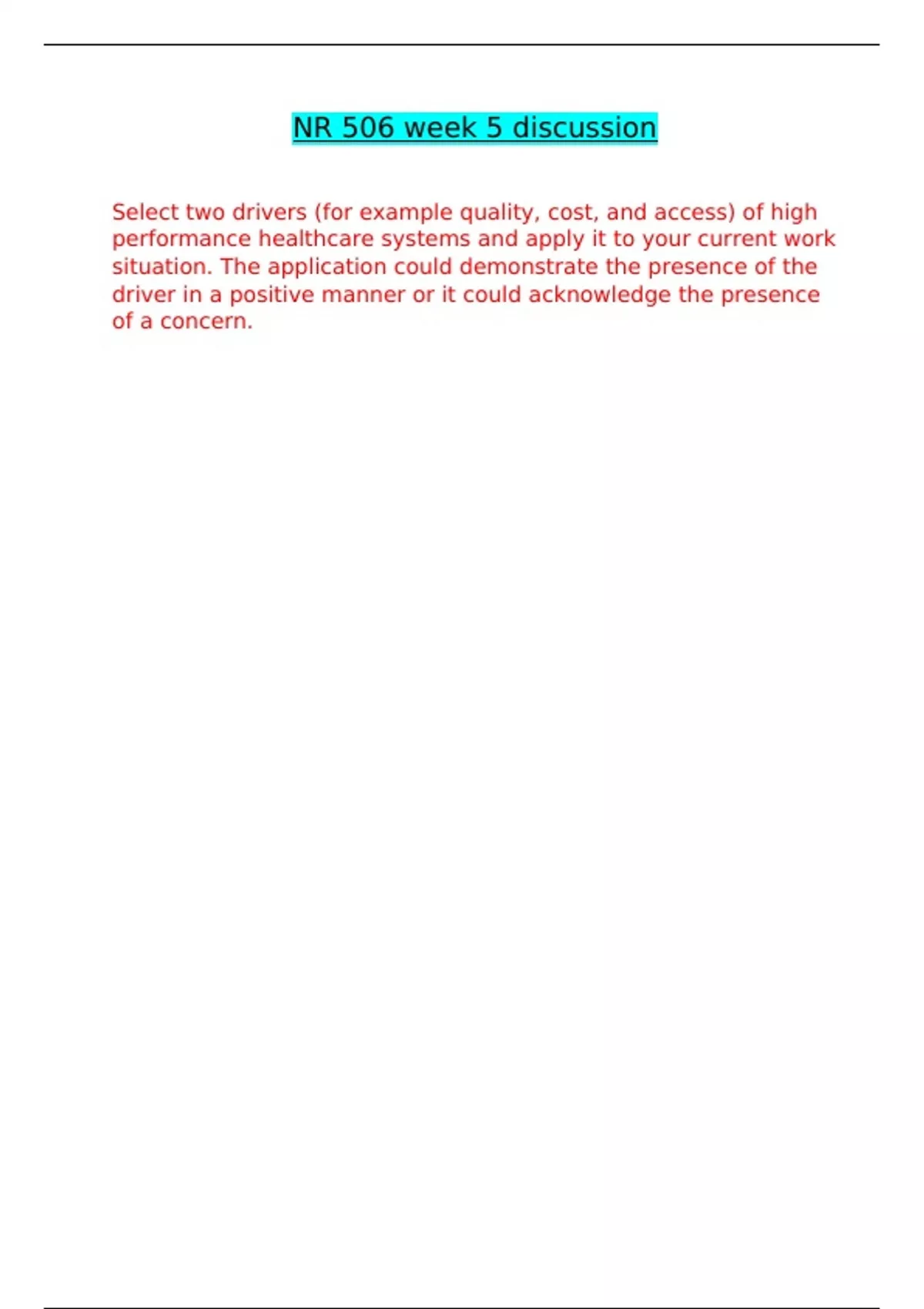nr 506 week 5 discussion exams correctly answered
