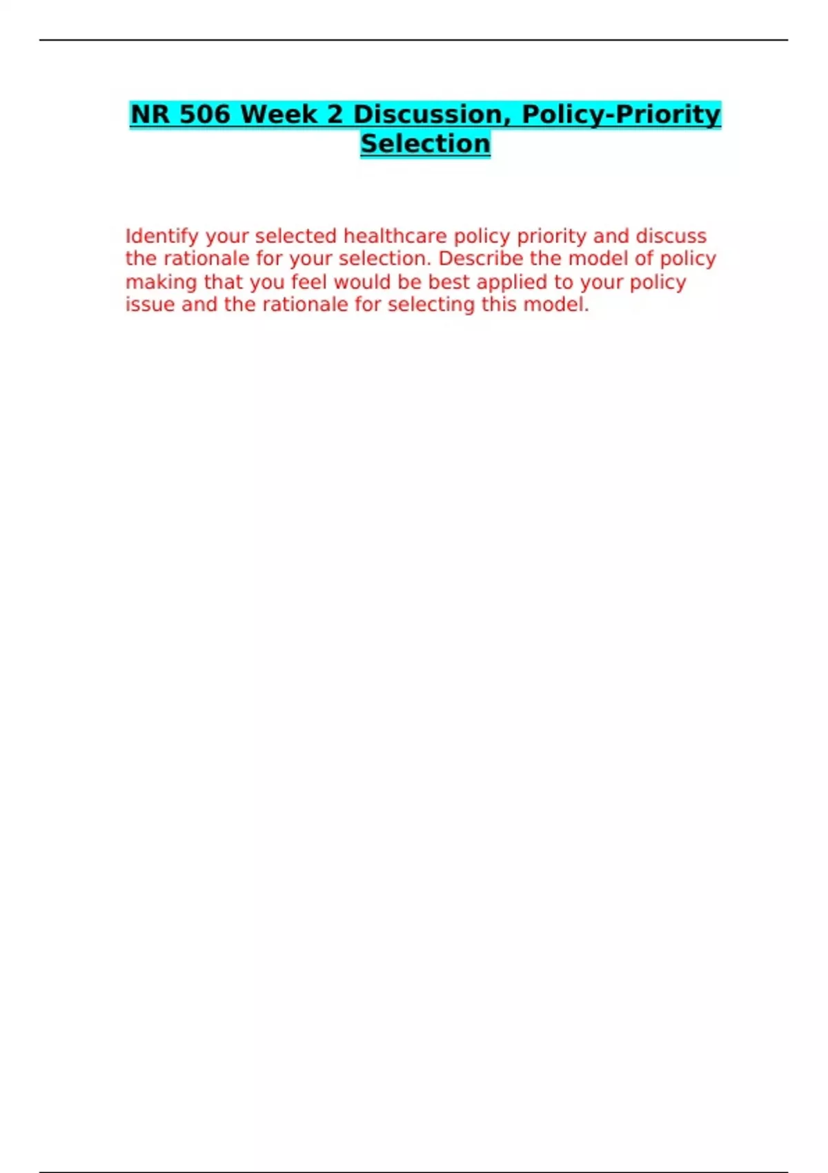 NR 506 WEEK 2 DISCUSSION EXAMS CORRECTLY ANSWERED / LATEST UPDATE VERSION / GRADED A+