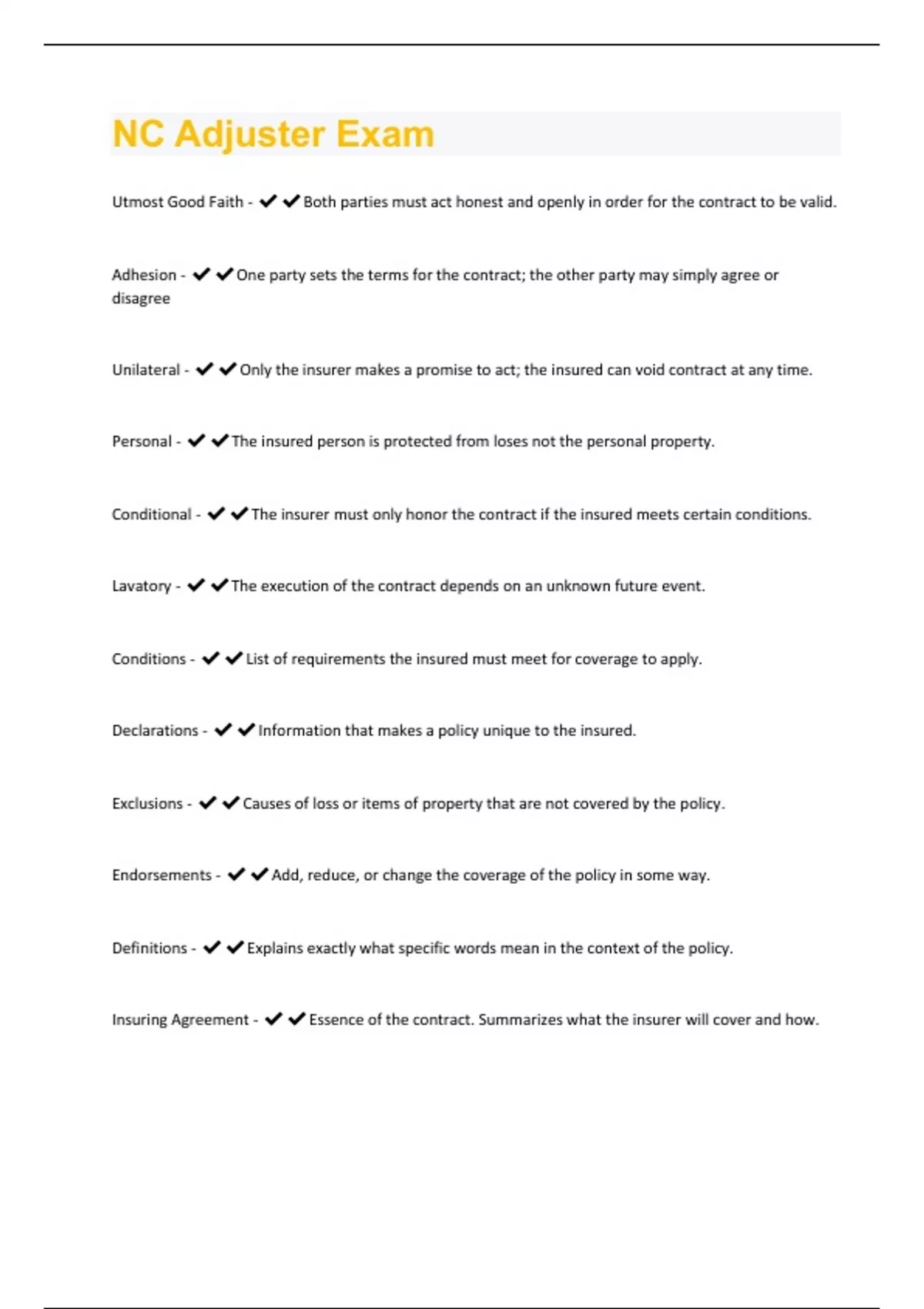 NC Adjuster Exam Questions and Answers Solved Correctly