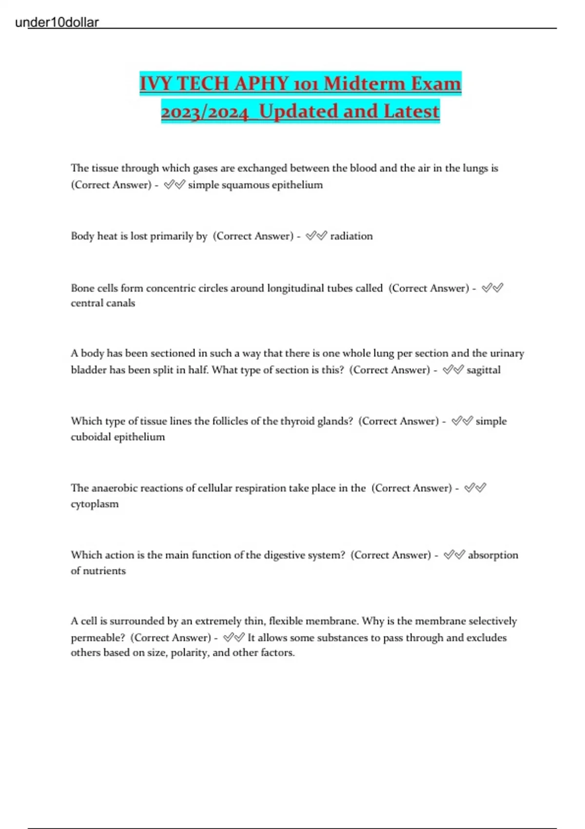 IVY TECH APHY 101 Midterm Exam 2023/2024_Updated and Latest