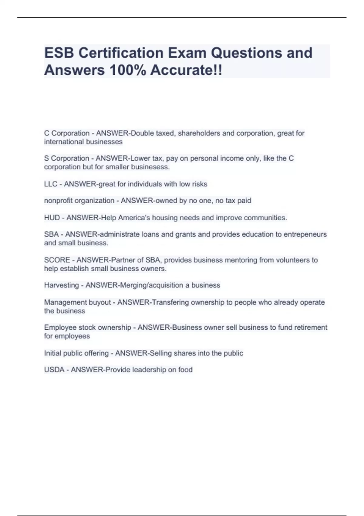 esb certification exam stuvia