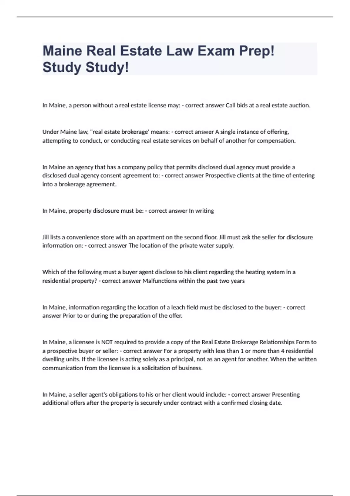 Maine Real Estate Law Exam Prep! Study Study question n answers graded A+ 2023/2024