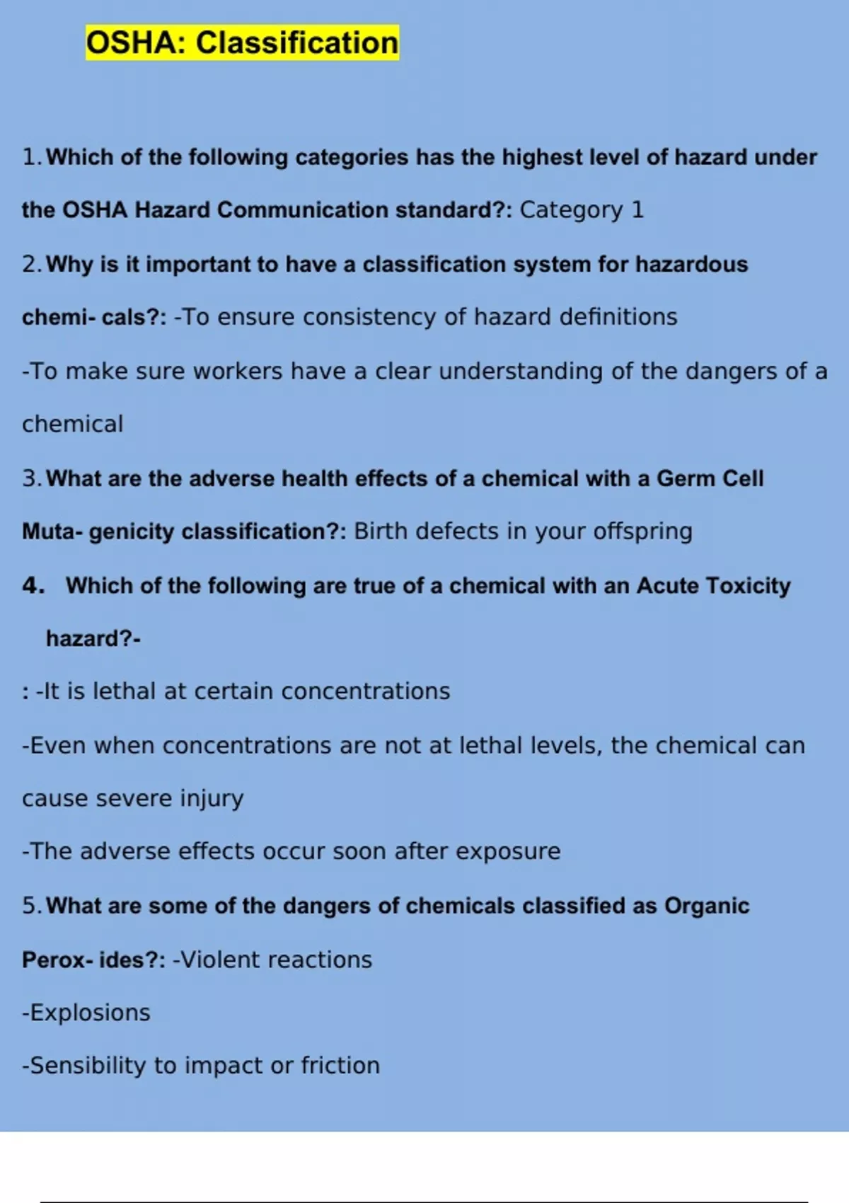 OSHA Classification Questions with 100% Correct Answers | Verified | Updated 2023