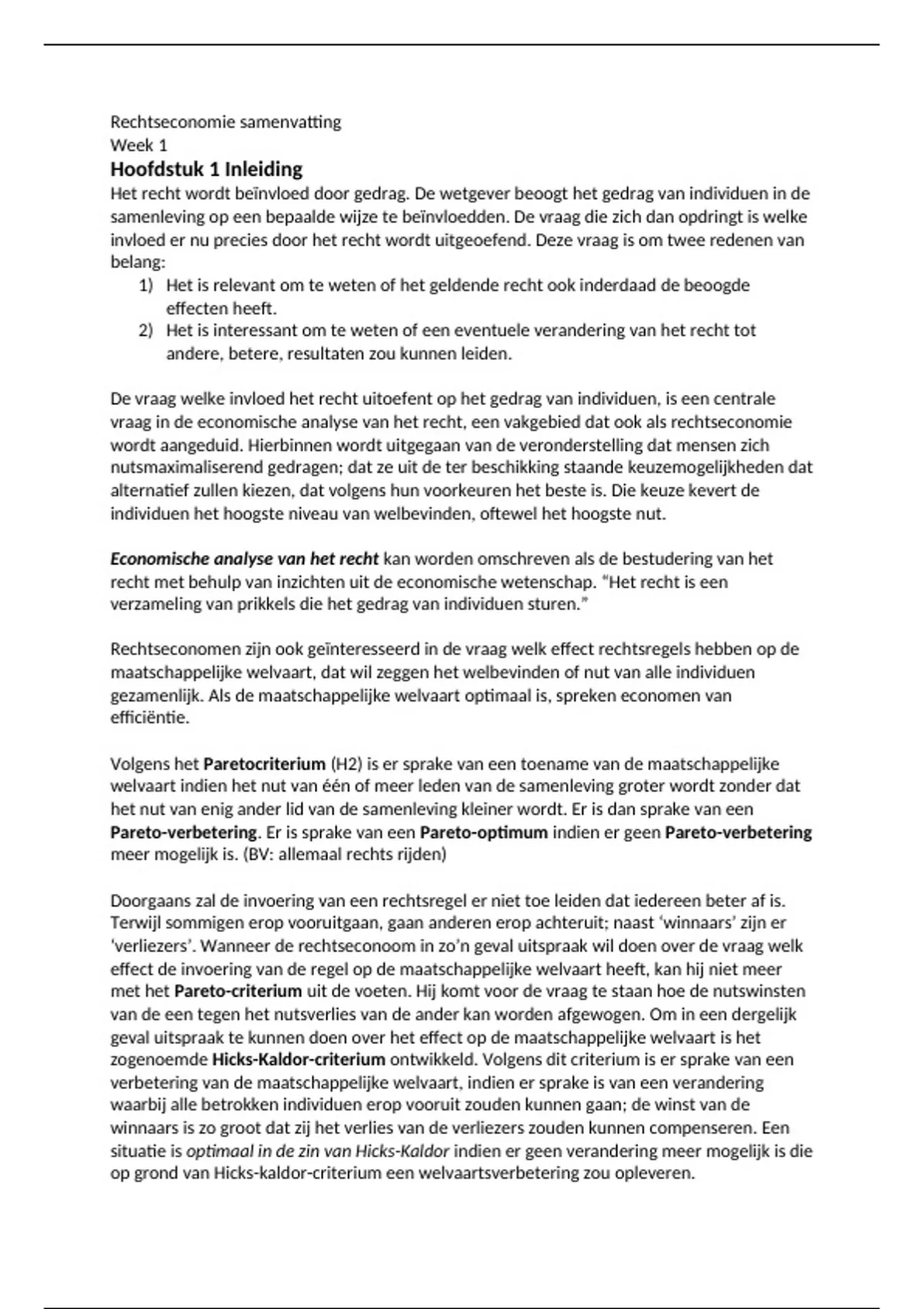 Samenvatting week 1 t/m 5 Rechtseconomie