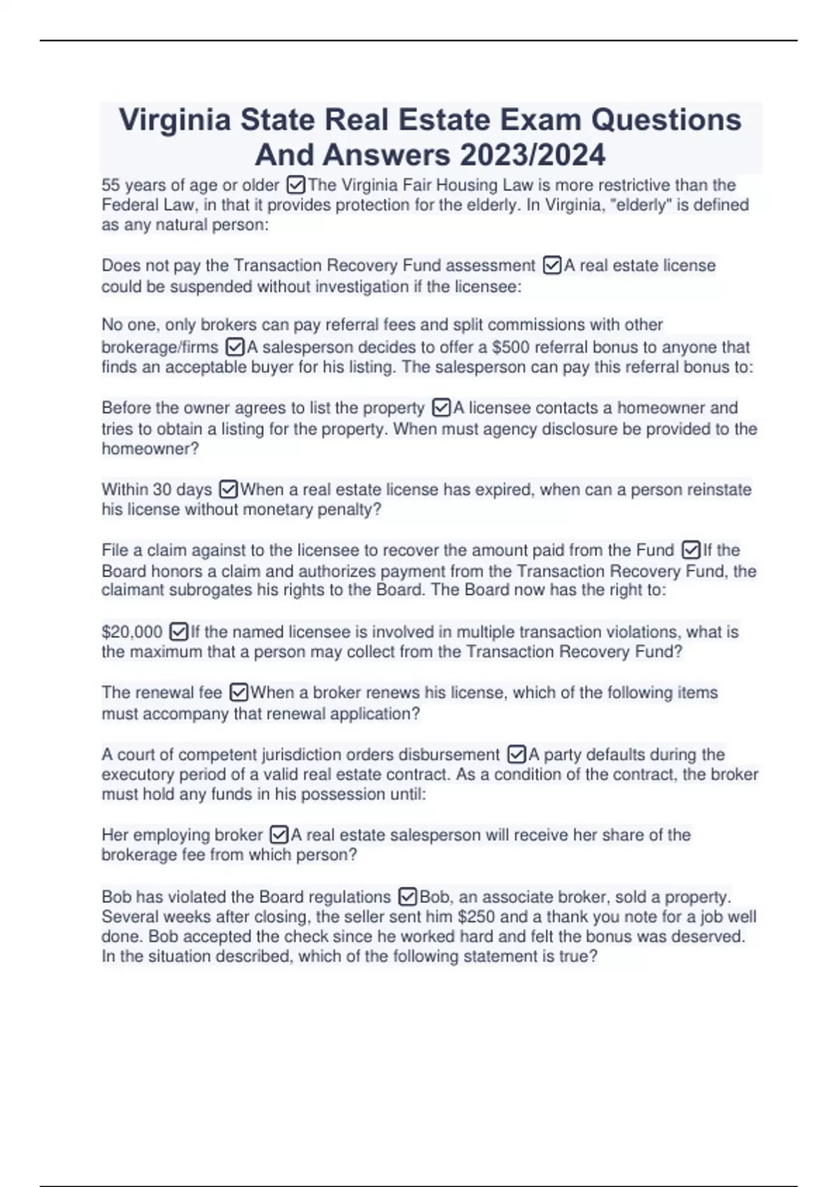 Virginia State Real Estate Exam Questions And Answers 2023/2024 Virginia State Real Estate Exam Questions And Answers 2023/2024