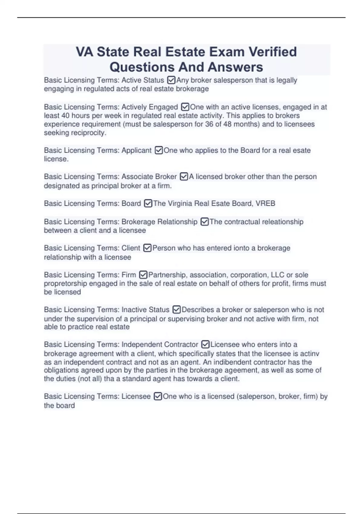 VA State Real Estate Exam Verified Questions And Answers VA State Real Estate Exam Verified Questions And Answers