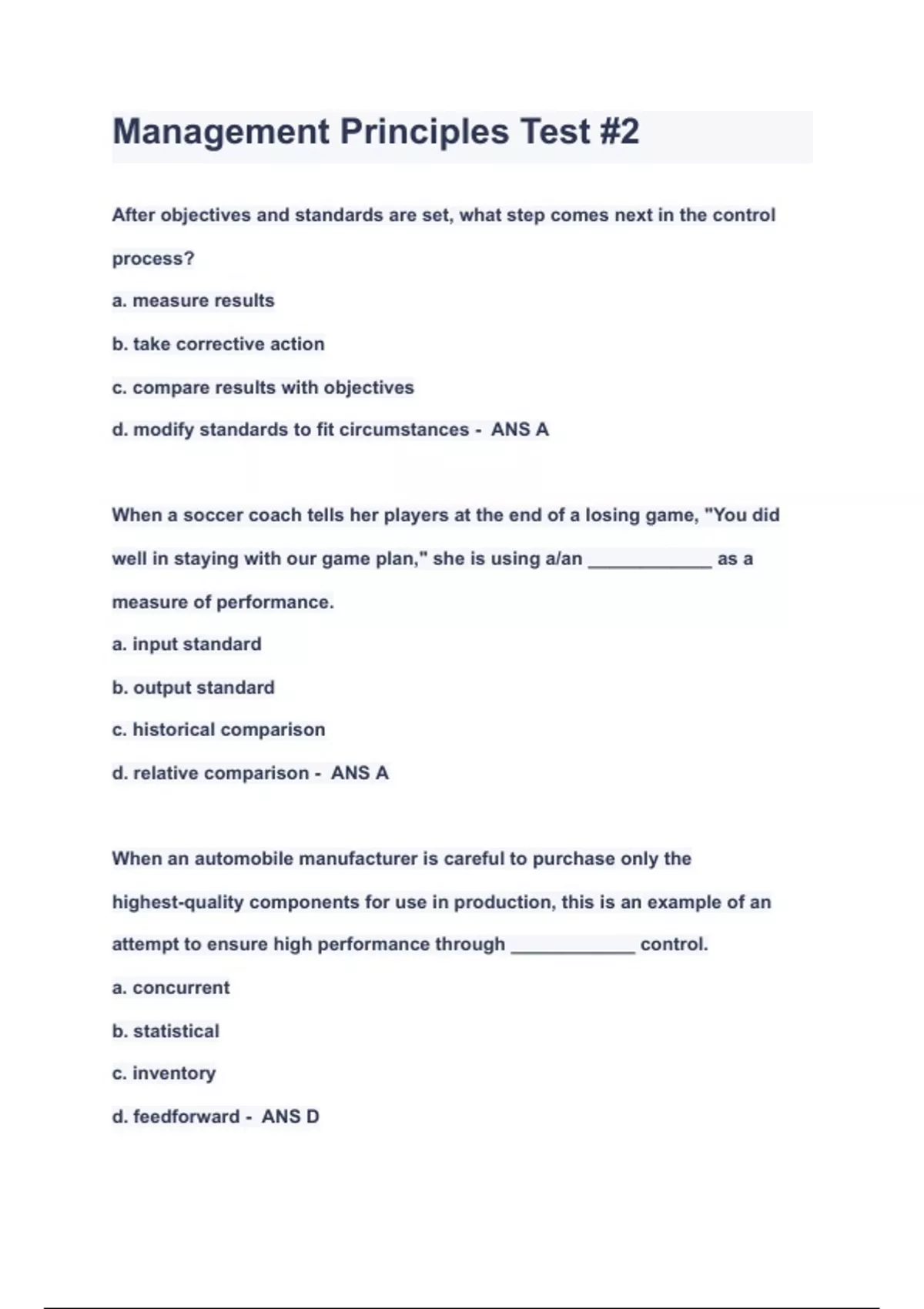 Management Principles Test Questions & Answers 2023(A+GRADED 100%VERIFIED)